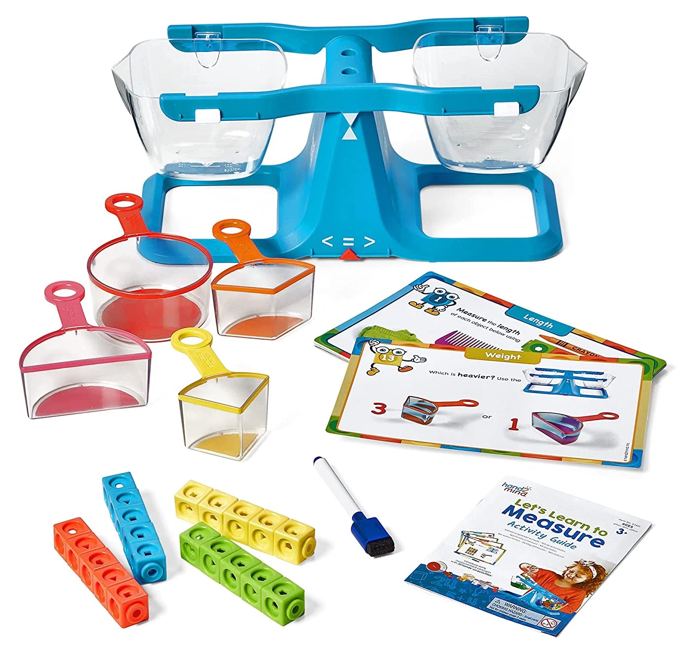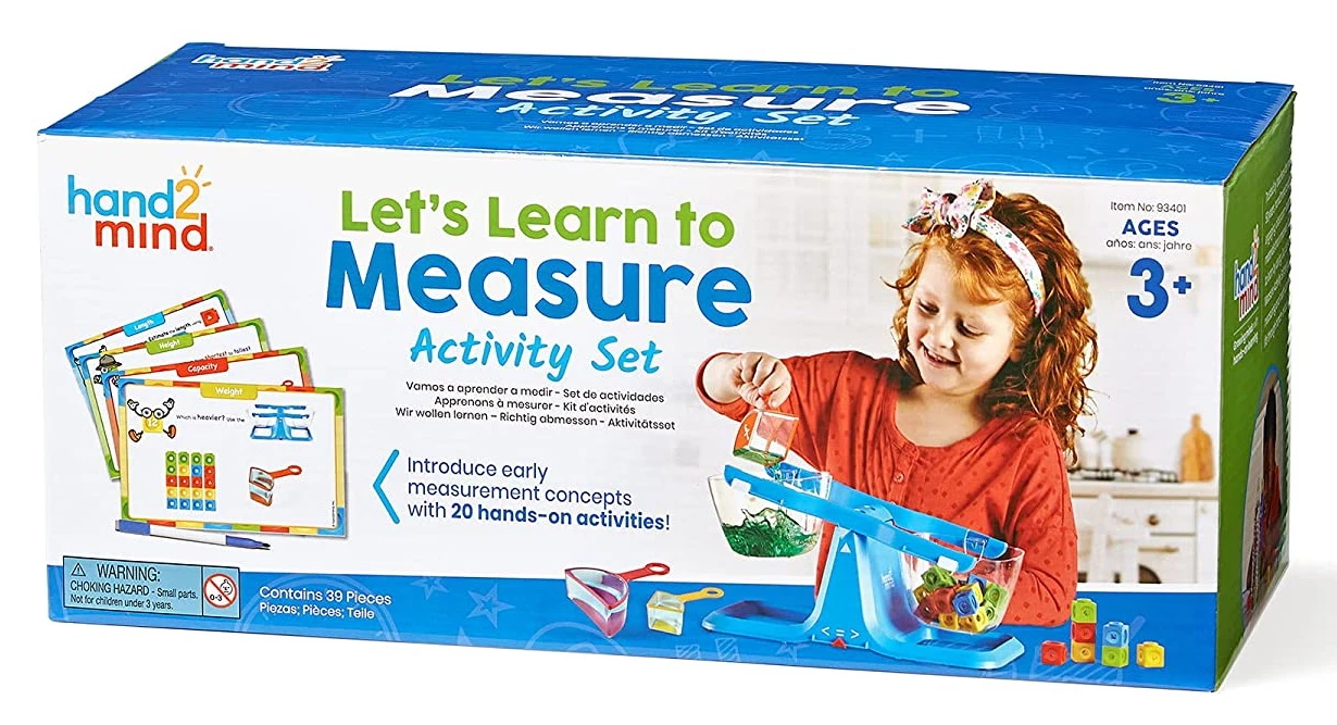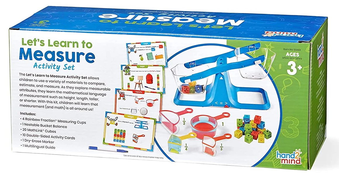hand2mind Let's Learn to Measure Activity Set, Kids Measuring Cups, Bucket Balance, MathLink Cubes and Activity Cards