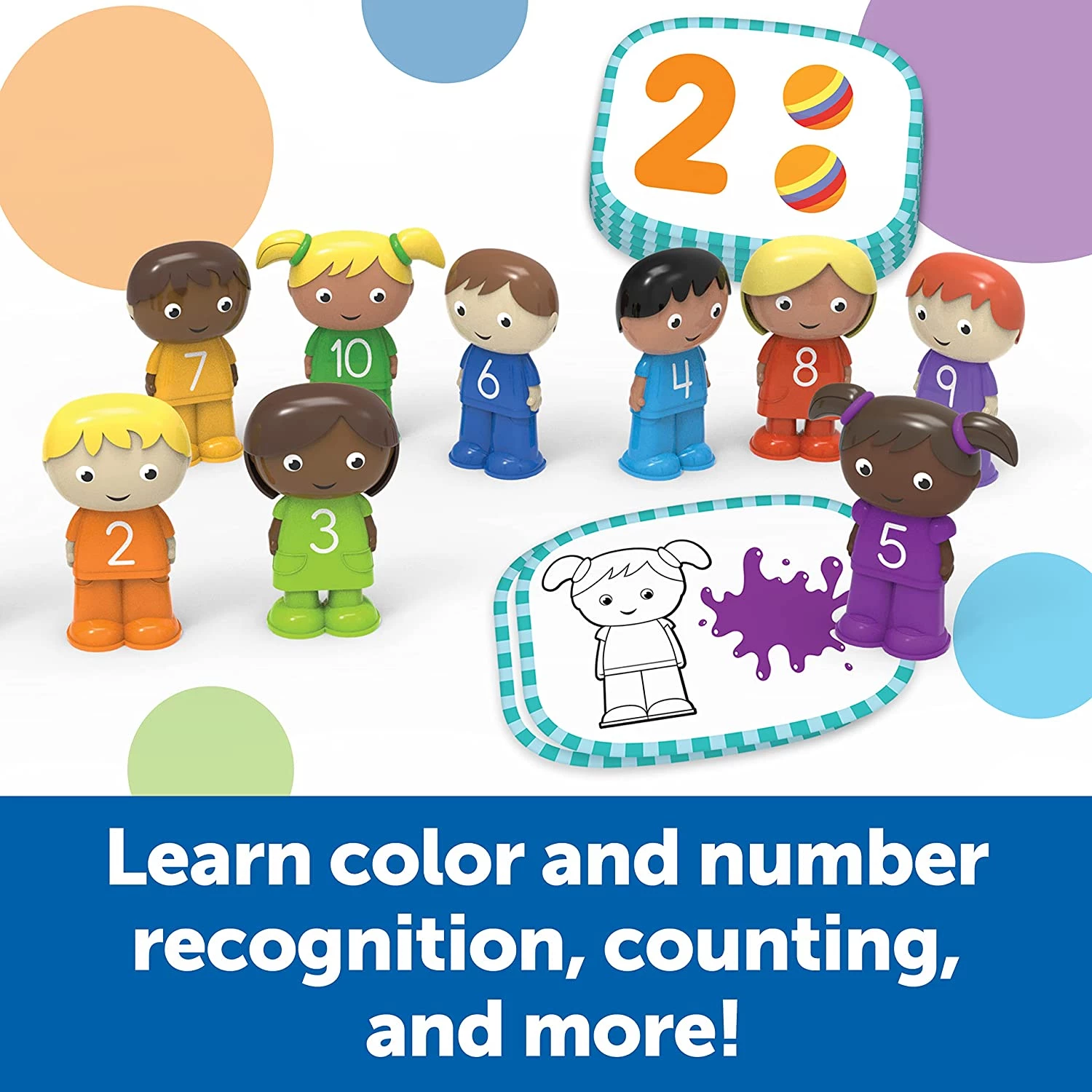 Набір включає різнокольорові фігурки дітей з порядковими номерами. Фішки мають зручні для дитячих ручок розміри. Вони допомагають у розвитку дрібної моторики, у розпізнаванні кольорів та чисел.