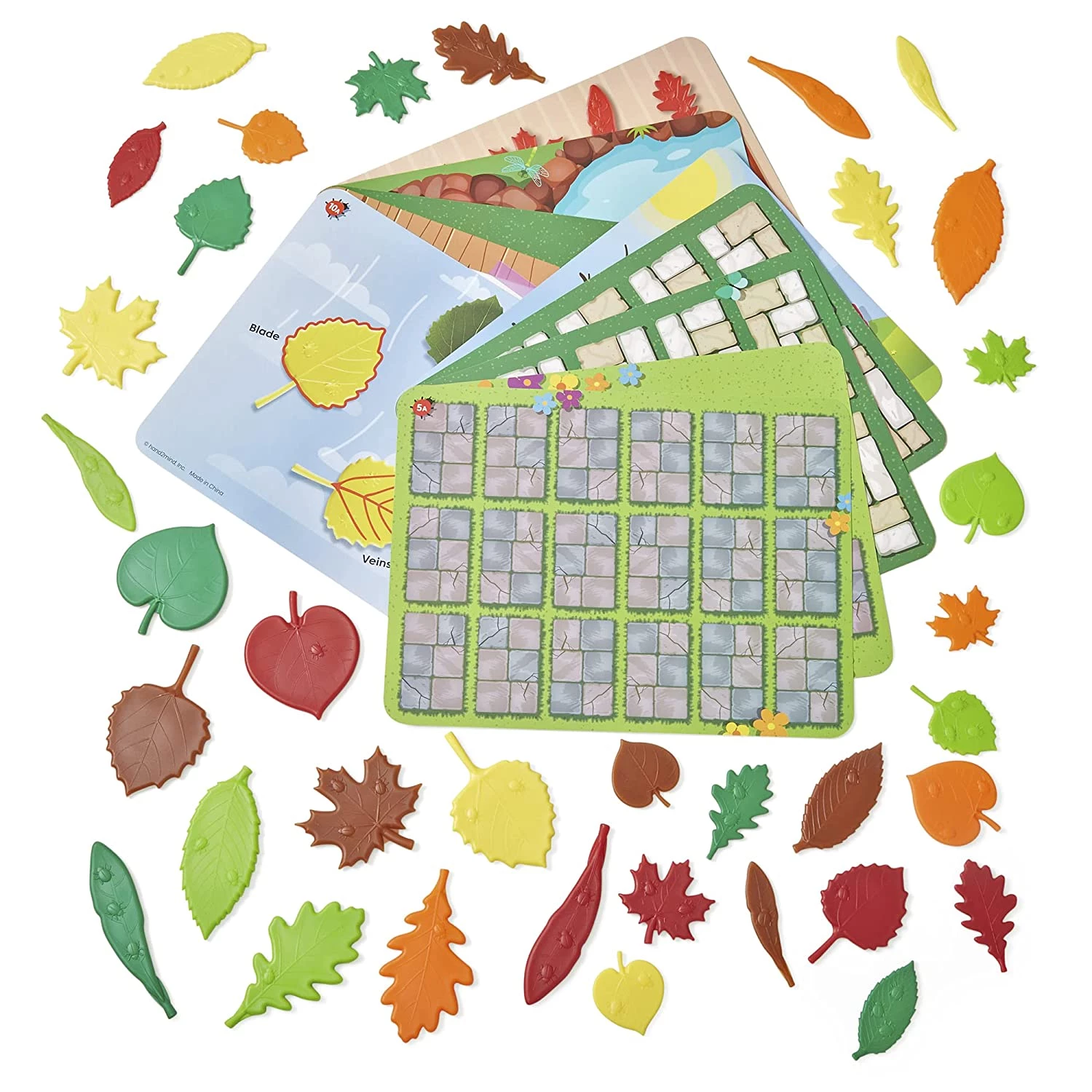 Навчальний набір Сенсорне листя містить цікаві та корисні завдання, які познайомлять допитливих малюків з азами математики. Цей сертифікований набір із переробленого пластику включає 36 листочків, 10 двосторонніх карток із завданнями та посібник із занять. Сенсорне листя поділяється на 6 різних типів, 6 різних кольорів і 3 різних розміри. Жуки, що знаходяться на звороті листочків, надають ще більше можливостей для складання, віднімання, підрахунку та сортування.