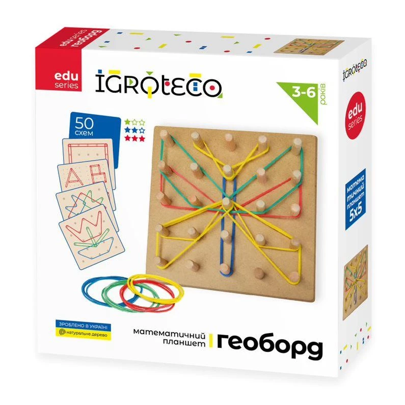 Розвиваюча дерев'яна іграшка Геоборд є багатофункціональною геометричною дошкою, призначеною для створення плоских зображень. Іншими словами — перед вами дошка з гумками для нанизування. Оригінальна розвивальна іграшка, виготовлена з екологічно чистої деревини — це і гра, і навчання.