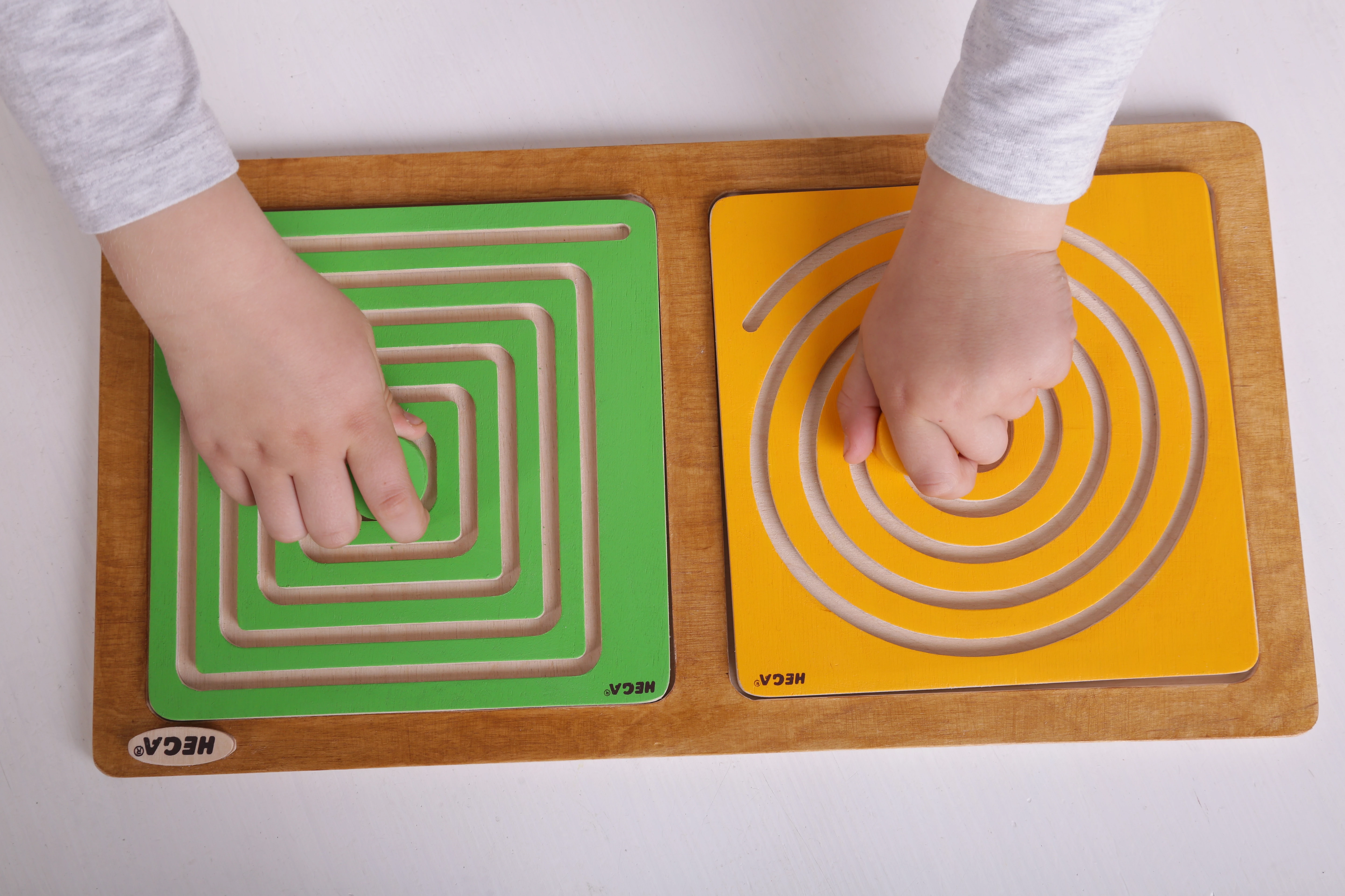 Ігровий набір від торгової марки Hega — це не просто головоломка, а свого роду навчальний посібник, що сприяє розвитку обох півкуль головного мозку. Пропонуйте малюкові займатися з цими дидактичними лабіринтами щодня протягом шести тижнів, і ви залишитеся задоволені результатом! Використання представленого тренажера ґрунтується на широко відомій серед педагогів та дитячих психологів методиці Монтессорі.