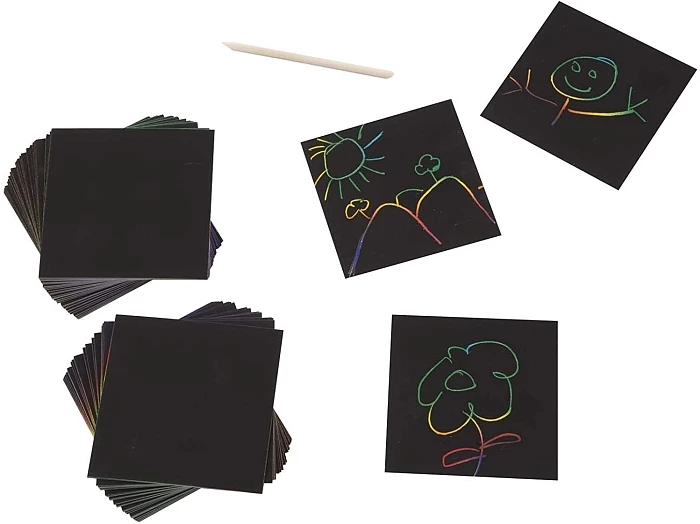 Набір від торгової марки Melissa & Doug включає 125 простих у використанні райдужних листів, які діти можуть використовувати для створення нотаток, гравіювання малюнків, а також для класних ілюстрацій і дизайнів. Набір для скретч-арту виконаний у яскравих кольорах, що ховаються під матовим покриттям. Діти просто використовують дерев'яний стилус, що входить в комплект, аби подряпати покриття і виявити кольоровий шар. Коли діти зішкрябають поверхневе покриття, їм буде приємно побачити яскраві кольори, які ховаються під ним. Робіть нотатки, створюйте гравюри, словом, не соромтеся експериментувати!