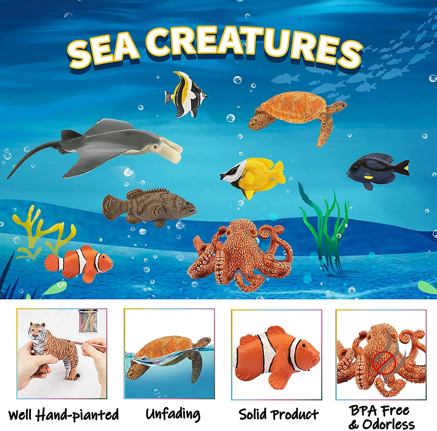TOYMANY 8PCS Sea Animals Toy Figures for Kids, Plastic Ocean Animal