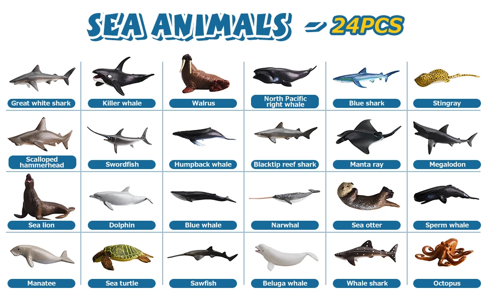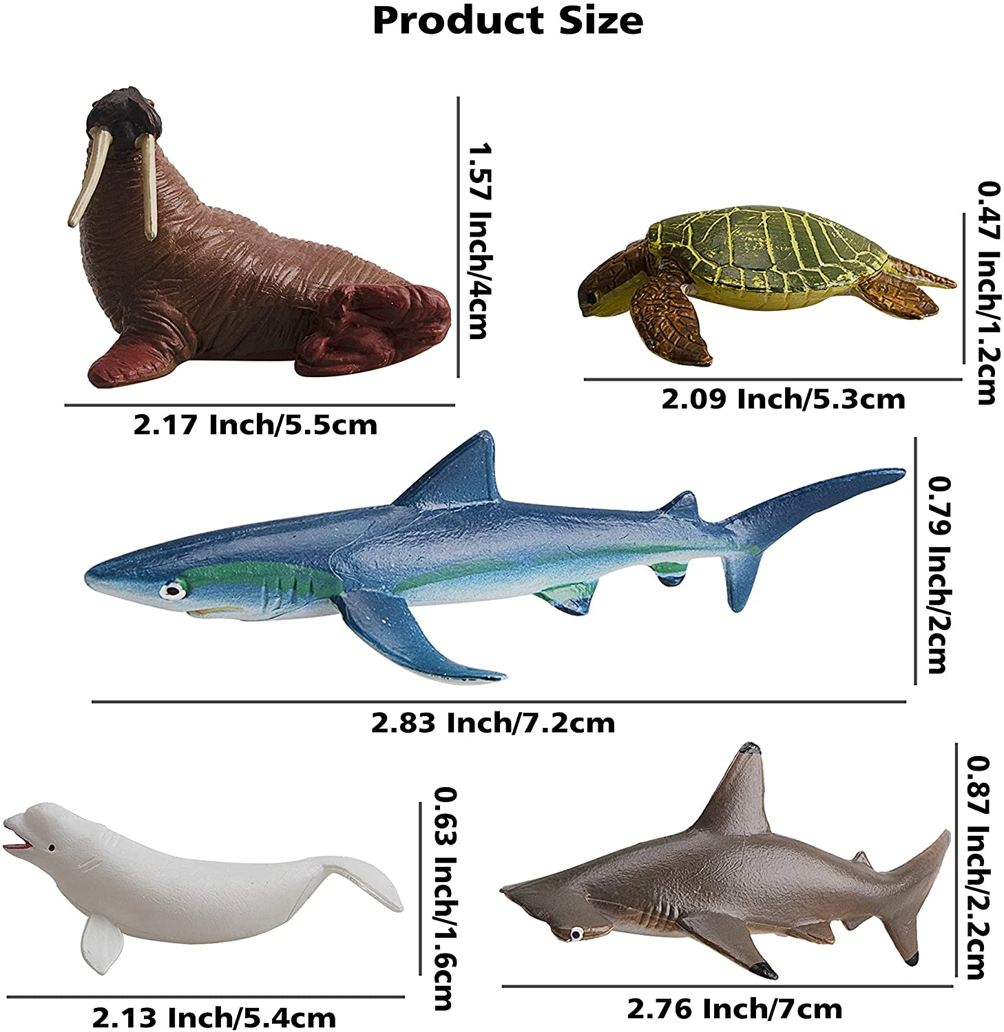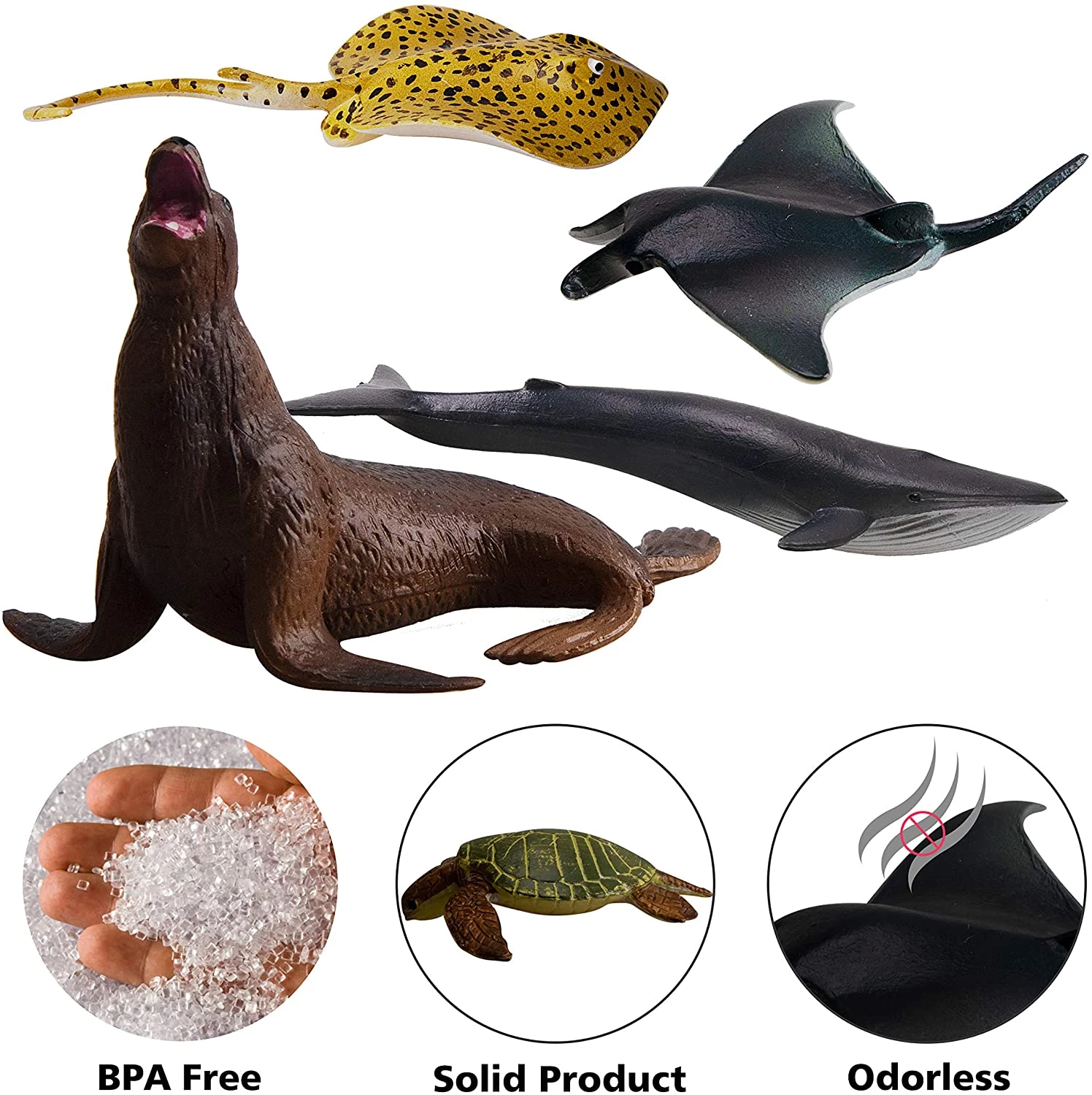 TOYMANY 24PCS Mini Sea Animal Figures, Realistic Ocean Animals Figurines Cake Topper Toy Set