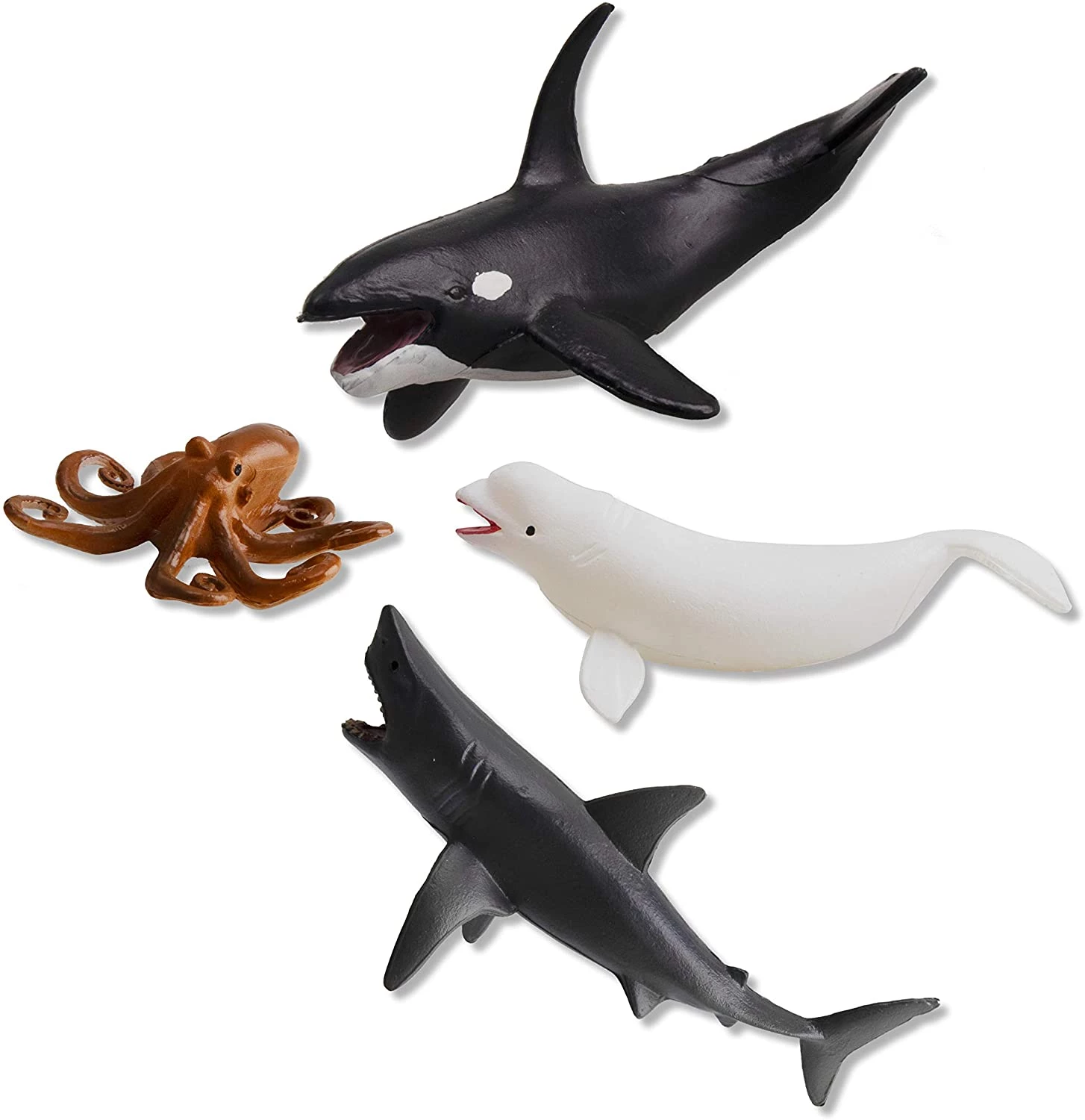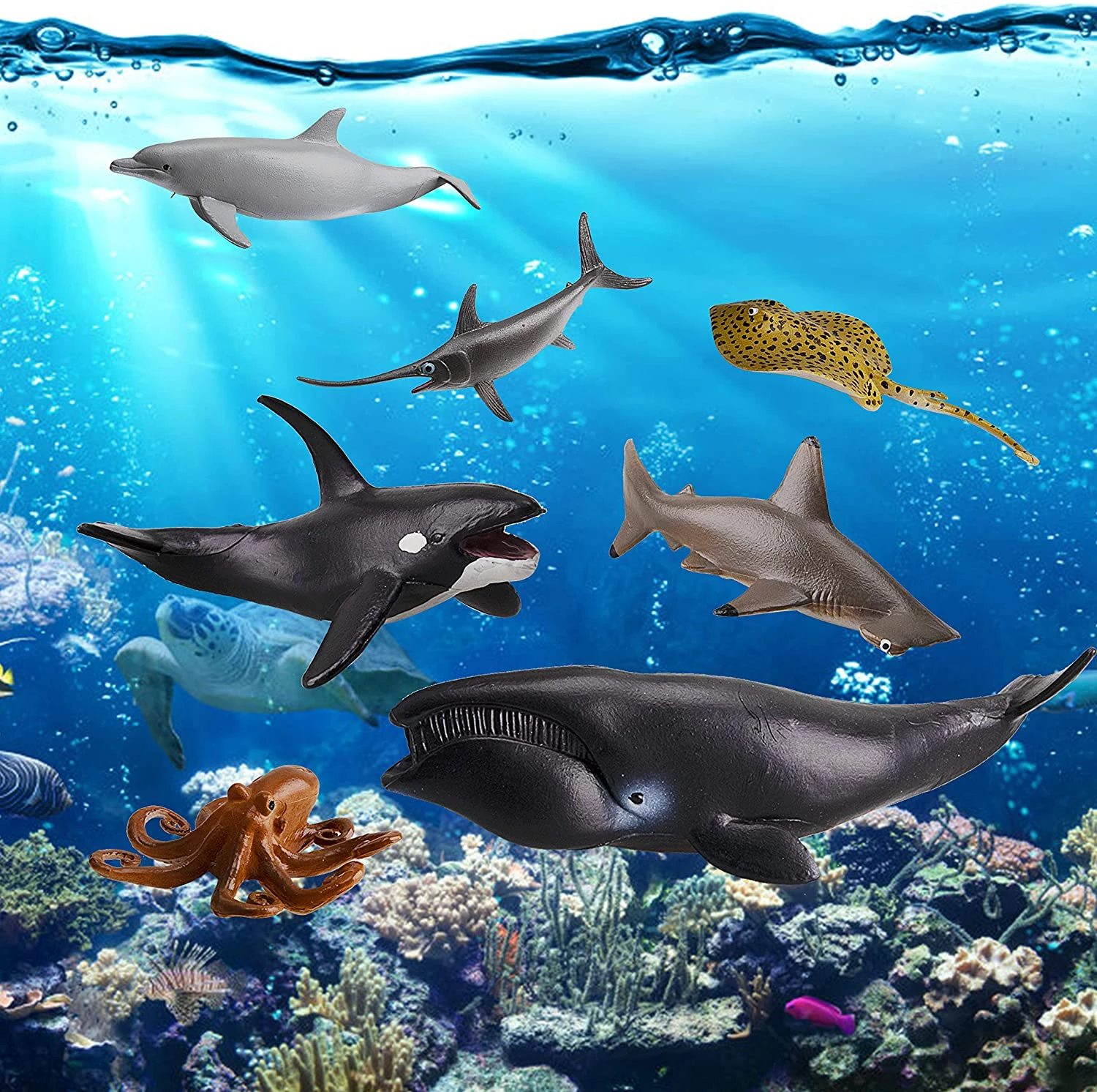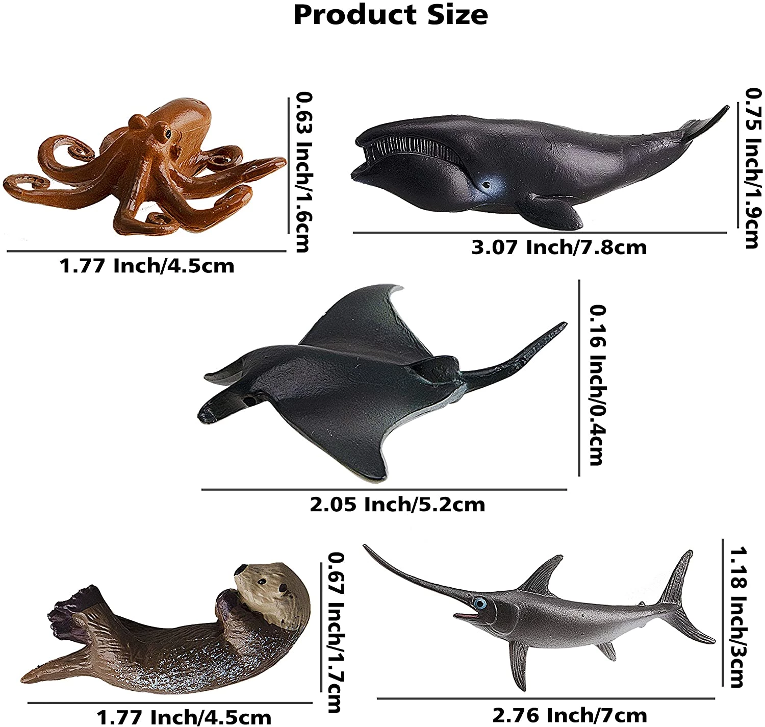 TOYMANY 24PCS Mini Sea Animal Figures, Realistic Ocean Animals Figurines Cake Topper Toy Set
