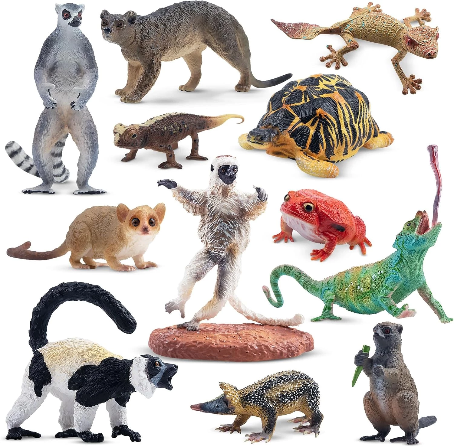 TOYMANY 12PCS Realistic Jungle Animals & Zoo Animals Figurines