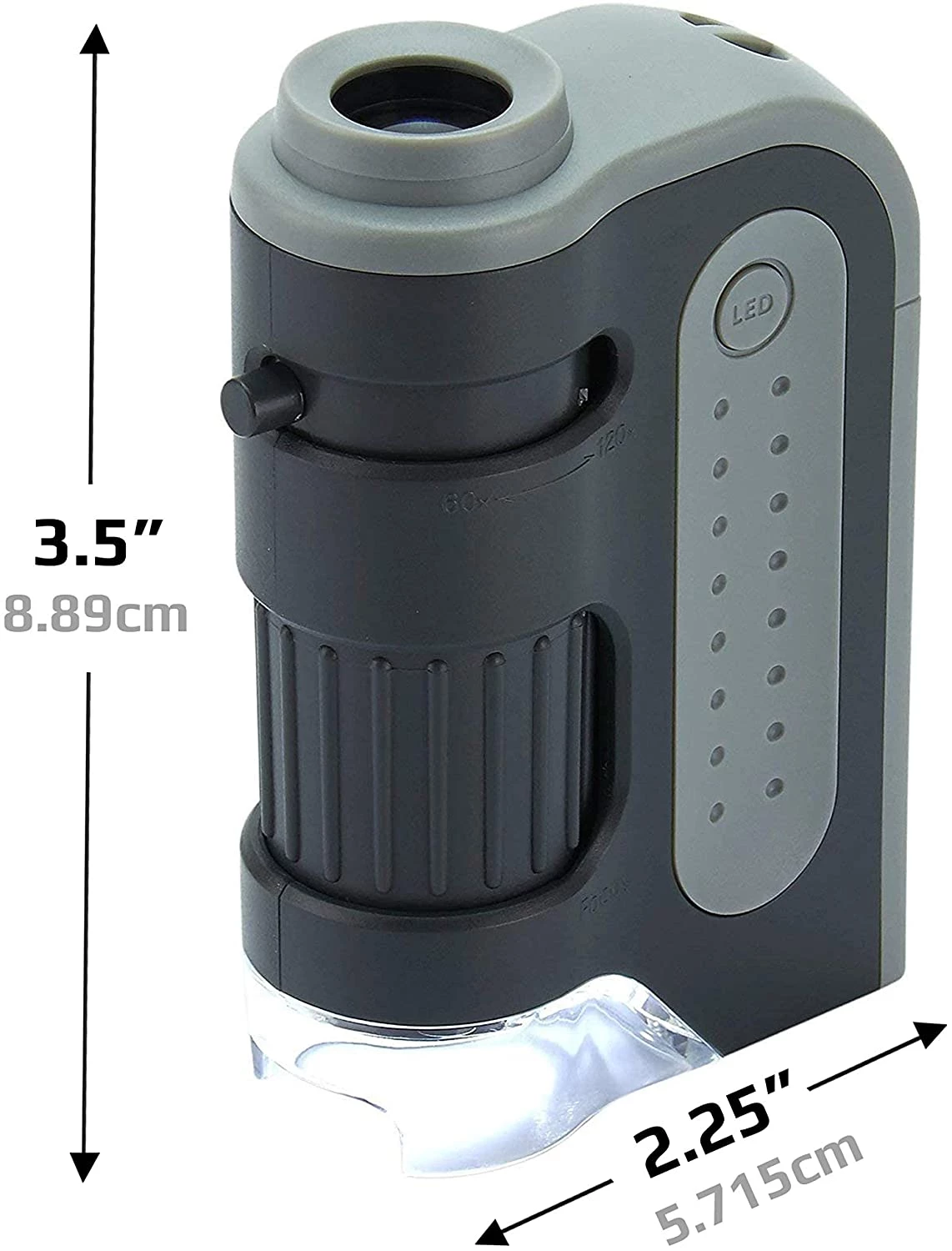Компактний кишеньковий мікроскоп - це мрія кожного юного дослідника навколишнього середовища. Прецизійні асферичні лінзи забезпечують чудову оптику, що дозволяє добре розглянути об'єкт. Портативний пристрій можна носити в кишені, працює від батарейки. Зум в 60-120 разів вражає своїми можливостями, дитина буде в захваті від побаченого, а дорослі здивуються функціональності невеликого мікроскопа. Це чудовий унікальний подарунок на будь-яке свято, адже він неймовірно корисний і пізнавальний.