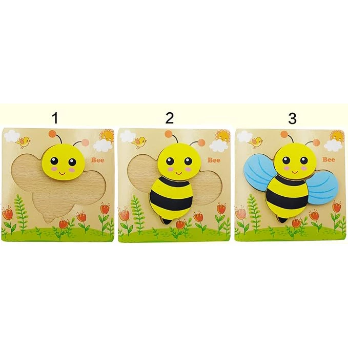Маленька бджілка відправилася на прогулянку. Такий пазл стане однією з улюблених ігор малюка. Можна зібрати пазл, розглядати картинку і придумувати цікаві історії. Барвистий малюнок зроблений безпечними для дітей фарбами. Деталі зроблені з дерева і добре відшліфовані. Всі 4 елемента пазла великі і дитині сподобається перебирати їх, підбираючи правильне розташування в рамці.