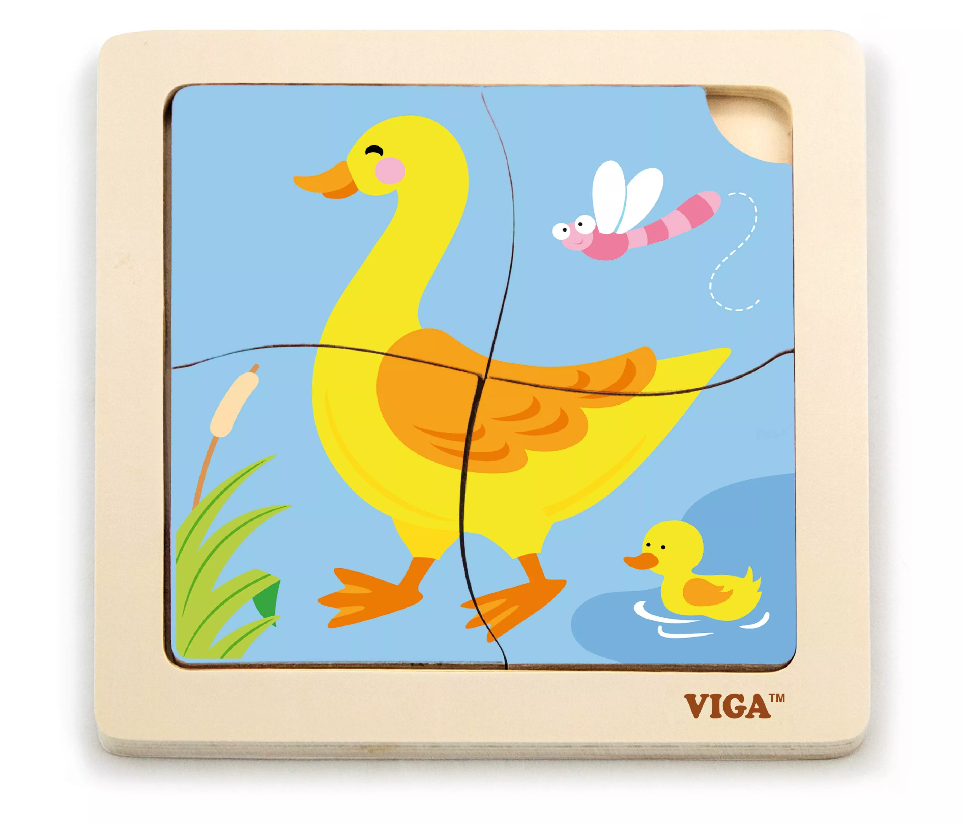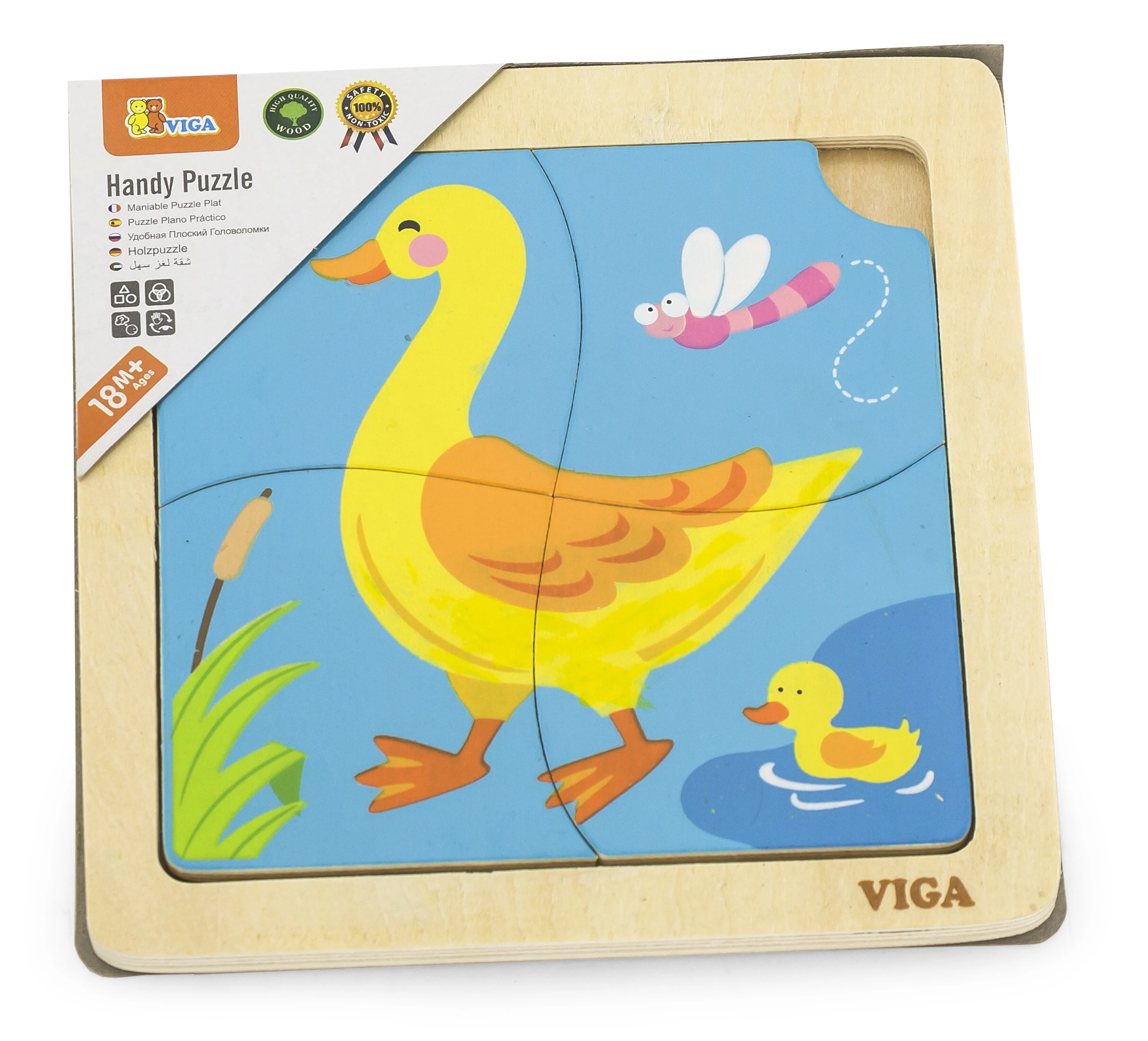 Каченя з каченям - відмінний перший розвиваючий пазл для малюка. Яскравий малюнок, великі елементи пазла, які зручно брати маленькими ручками. Під час гри, дитина може спочатку розглянути картинку, назвати хто на ній зображений, а потім спробувати зібрати пазл.