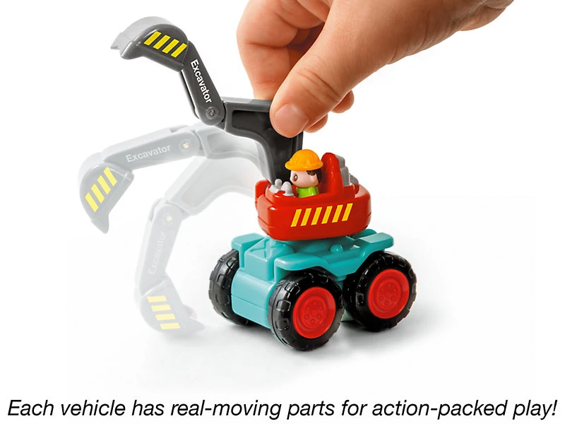Деталі машинок рухливі, наприклад, ви можете підняти кран у екскаватора. Під час гри у дітей розвивається навик моторики, координація.