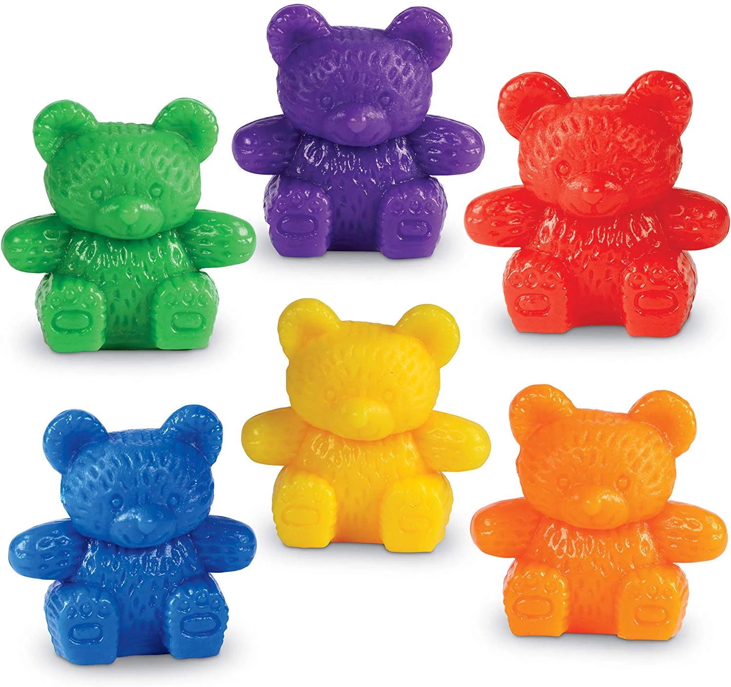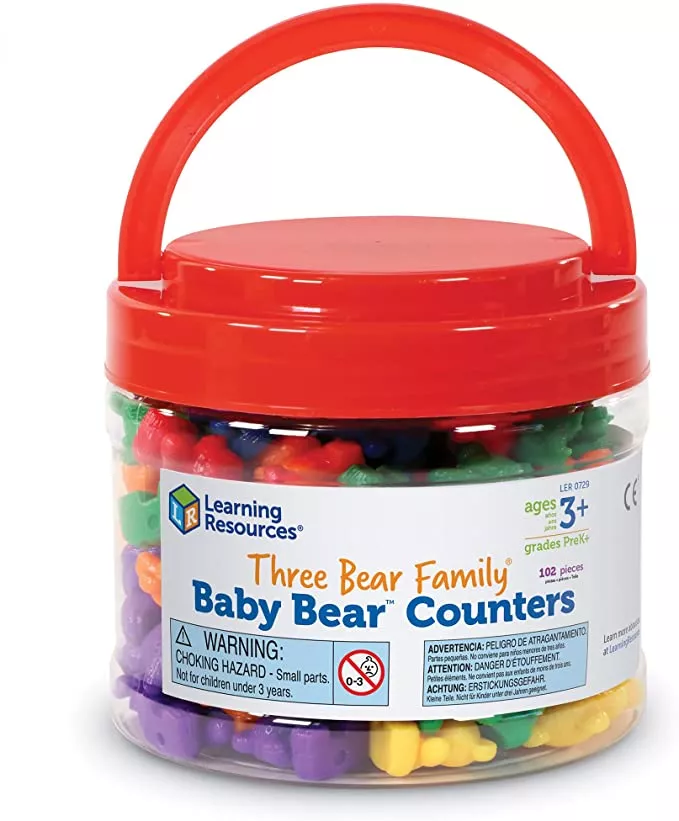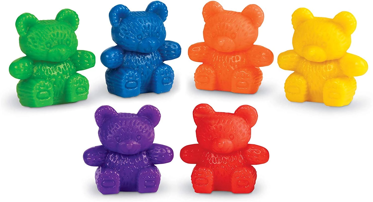 Яскравий набір для рахунку і сортування, в який входять різнокольорові ведмедики. Всього 102 ведмедя в 6 різних кольорах, тобто по 17 ведмедиків кожного кольору. Набір йде в комплекті зі зручним пластиковим контейнером з кришкою. З усієї серії Ведмедики від Learning Resources - це найменші ведмежата. Одна фігурка важить всього 4 грами і в висоту 3 см.