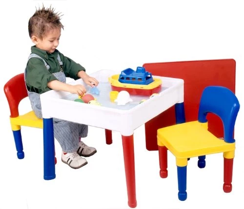Універсальний багатофункціональний стіл з реверсивною стільницею підходить для дітей молодшого віку. Кришка має подвійну поверхню - одна сторона забезпечує гладку поверхню, яка підходить для малювання і письма, в той час як інша сторона призначена як знову для всіх будівельних блоків (наприклад, Lego). Усередині столу порожній простір, яке може бути використане для іграшок, ігор і т. Д. Але простір в столі також підходить для піску або водних ігор.