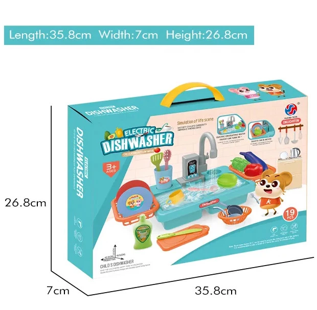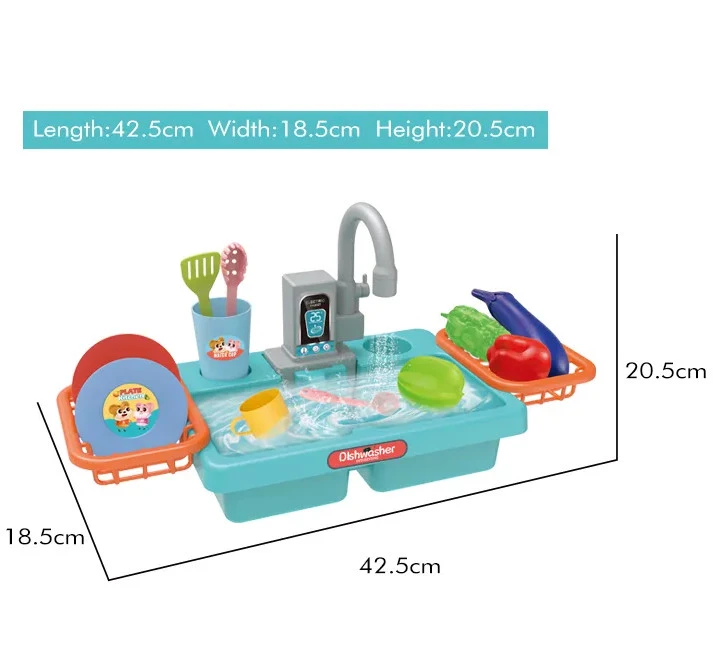 За допомогою представленого набору малюк зможе мити посуд та овочі, повторюючи дії дорослих. Ігрова мийка виконана настільки реалістично, що не залишить байдужою вашу дитину. Ігровий набір укомплектований мийкою з краном, комплектом посуду, миючим засобом, а також продуктами. Перевагою такого набору, його головною особливістю є кран, що функціонує — з нього по-справжньому тече вода. Також мийка обладнана двома бічними поличками, щоб зручно розмістити миті овочі та чистий посуд.