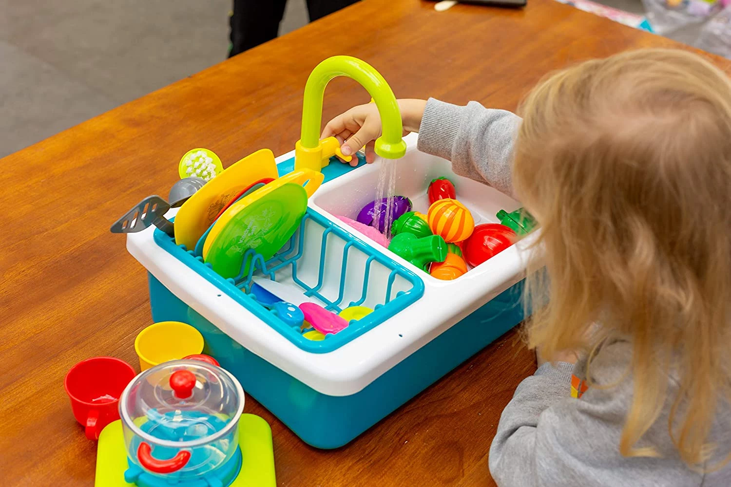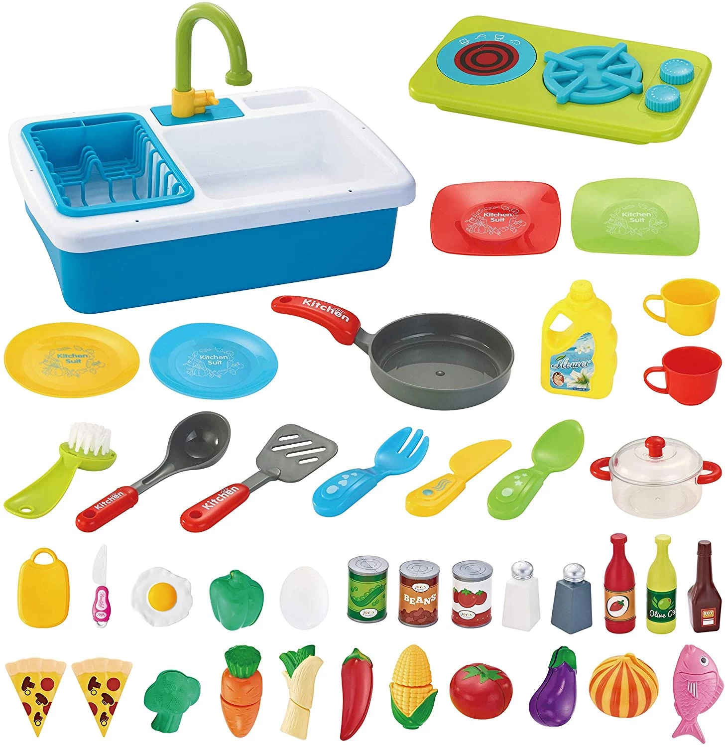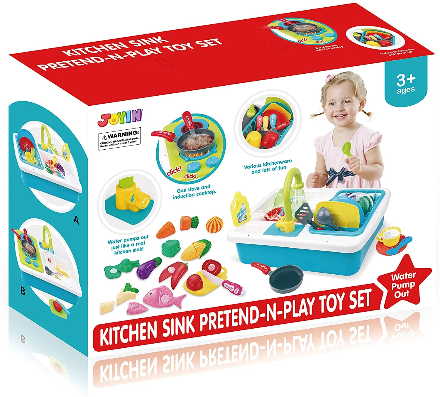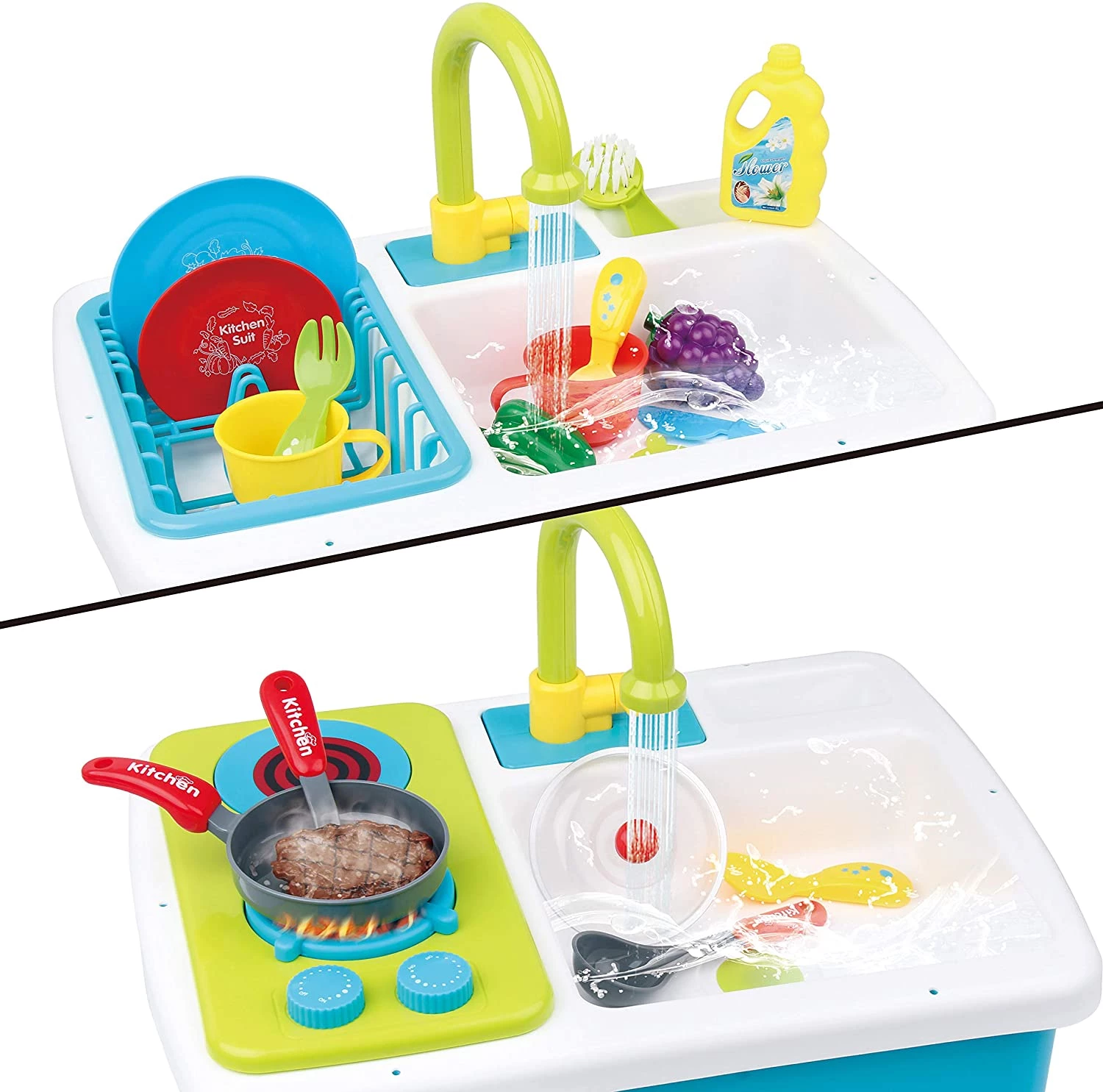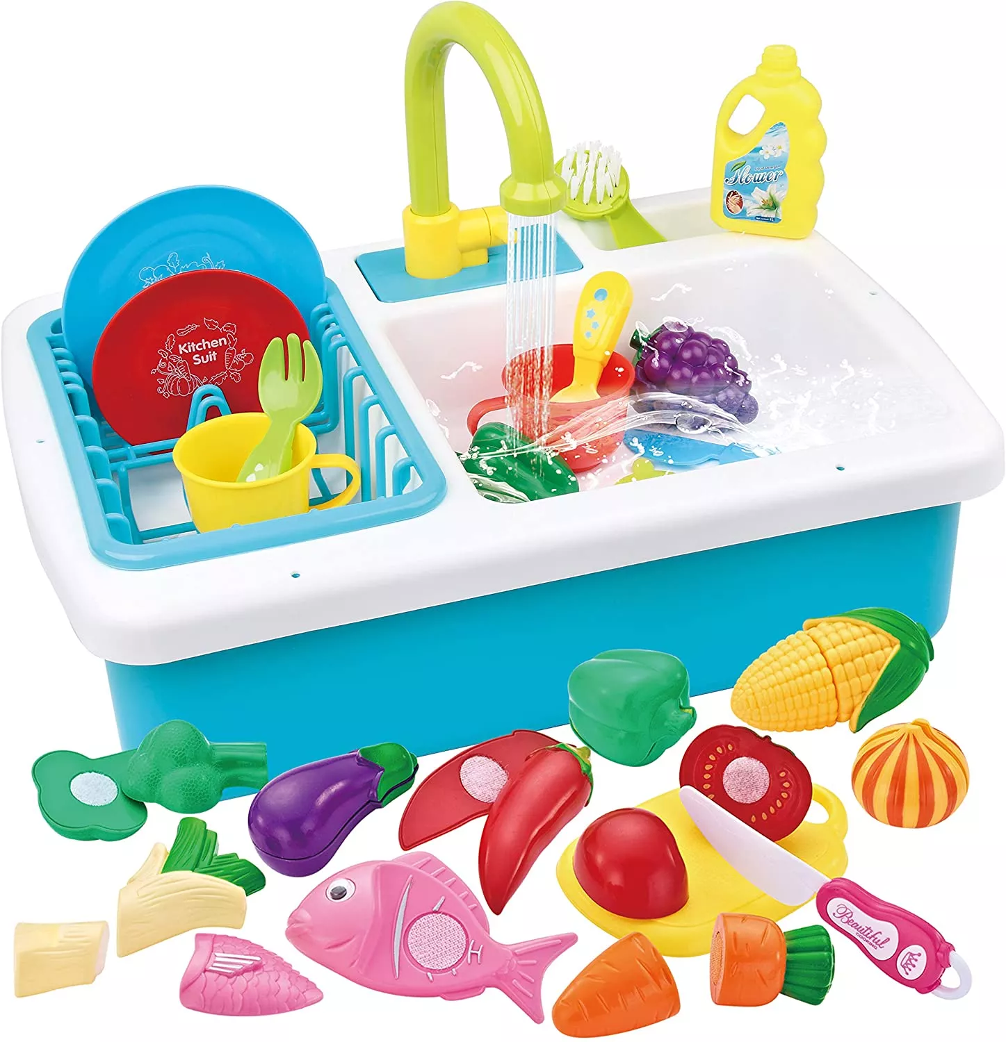 JOYIN Pretend-n-Play Play Kitchen Accessories Washing Dishes Toy Sink Playset with Running Water