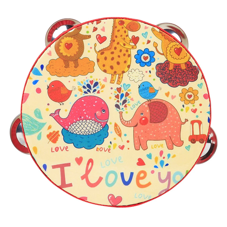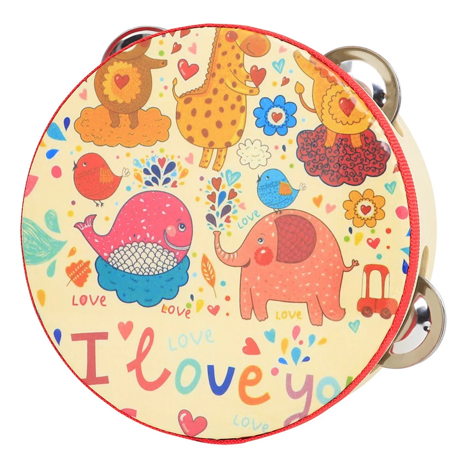 Яскравий оригінальний бубон має оптимальний розмір для дитячої ручки. Він підходить для різних музичних занять і для простих ігор вдома. За допомогою бубна діти зможуть навчитися відчувати ритм і виділяти його звук серед інших інструментів. На мембрану вироби завдано цікавий дизайн, моментально привертає діток. Ігри з бубном допоможуть розвинути дрібну моторику, координацію і музичний слух. Він виконаний з якісного натурального дерева і має міцні металеві пластини.