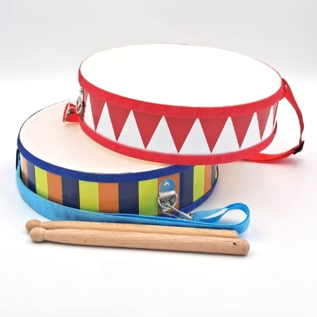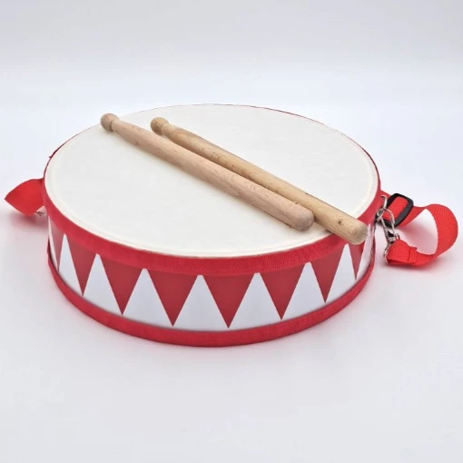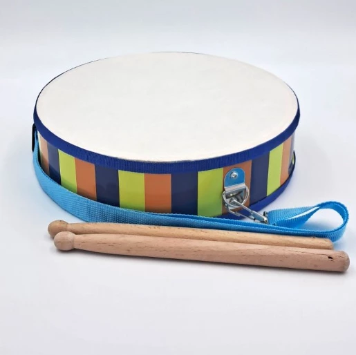 Яскравий і цікавий барабан допомагає розвинути у дитини музичний слух, навчить відчувати ритм і мелодію, а також добре тренує дрібну моторику і координацію рухів. Виріб виготовлено з деревини та пофарбовано безпечної нетоксичної фарбою. Барабан можна повісити на шию за допомогою спеціального ремінця. Витяг звуку відбувається при постукуванні по полотну спеціальними паличками, що йдуть в комплекті. Це приємний розвиває подарунок на будь-яке свято.