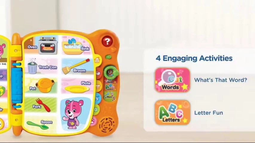 Ця навчальна іграшка для малюків містить 12 сенсорних сторінок, які допоможуть вивчити більше 100 слів в шести категоріях, 90 унікальних звуків і 15 мелодій на 12 повнокольорових і неймовірно детальних сенсорних сторінках. Відмінна іграшка для раннього навчання; чотири режими гри, в тому числі: що це за слово, забавні літери, веселі мелодії.