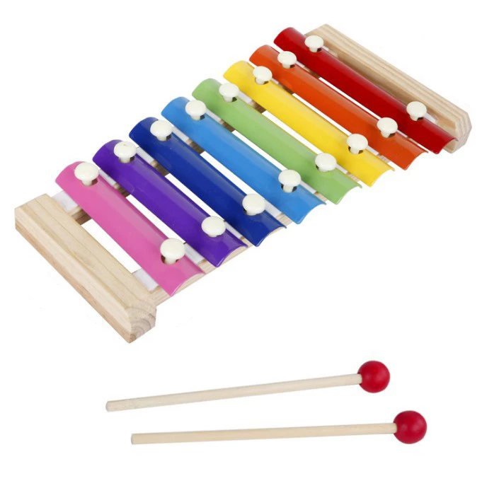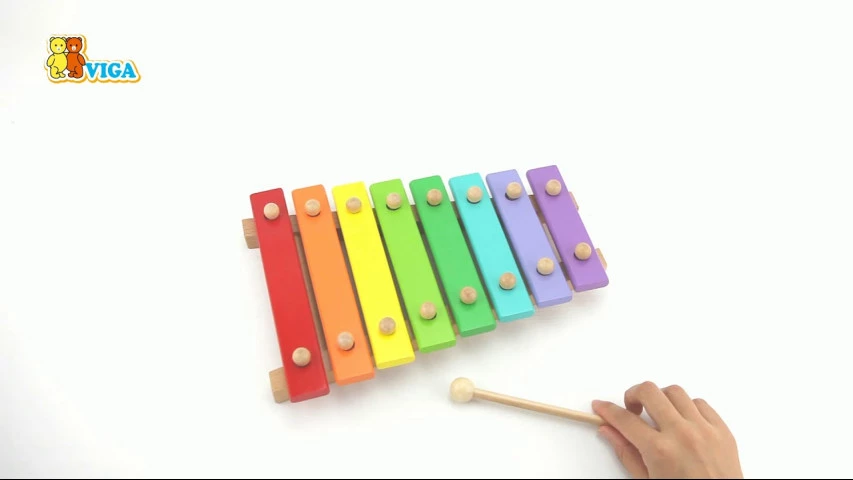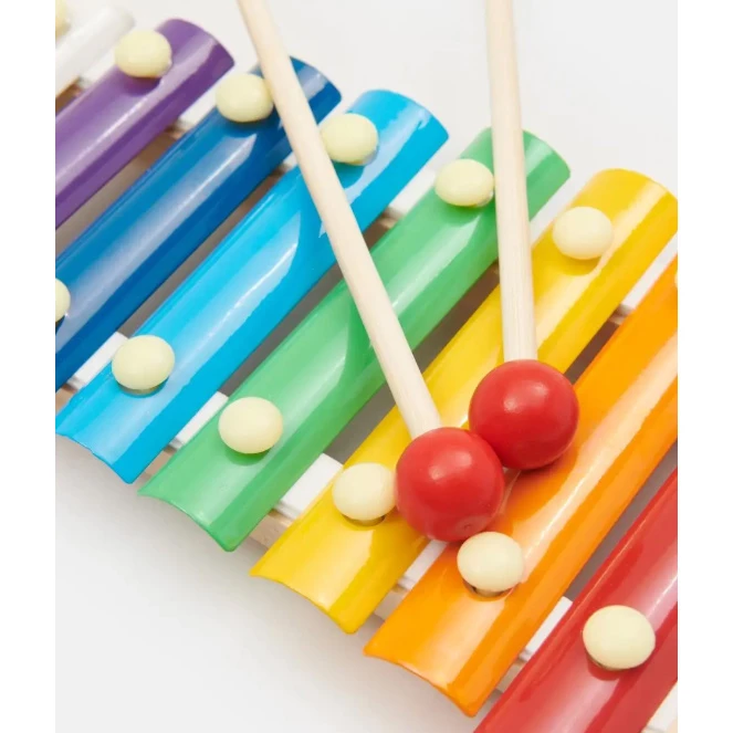 Барвистий дерев'яний ксилофон захопить маленького музиканта. Еко іграшка зроблена з дерева і безпечна для дітей. Металеві пластини при постукуванні паличкою - видають мелодійні звуки.