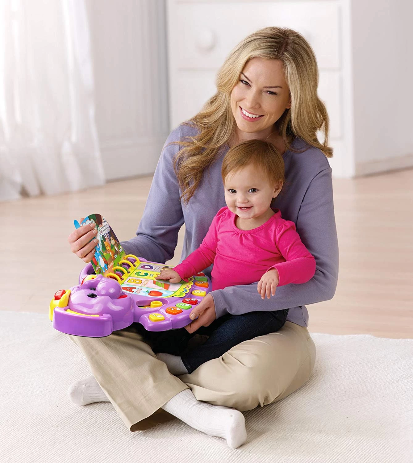Читайте про пригоди Слоника на 16 інтерактивних сторінках книжки. Вивчайте з дитиною цифри, букви, перші слова і багато іншого. Малюку сподобається натискати на 4 миготливі кнопки з нотами або 8 кнопок із зображенням тварин, щоб взаємодіяти з сюжетом, дізнаватися про тварин і цифри і слухати більше 150 пісень, звуків і фраз.