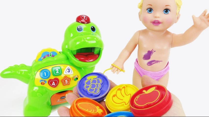 Яскравий веселий динозаврик так любить їсти. Дитині сподобається засовувати різнокольорові монетки з малюнками їжі і слухати що говорить динозавр. Іграшка познайомить дитину з кольорами, назвами їжі, формами і рахунком. А ще в динозаврик близько 130 пісень, мелодій, звуків і фраз.