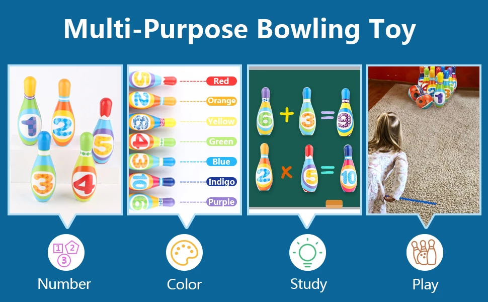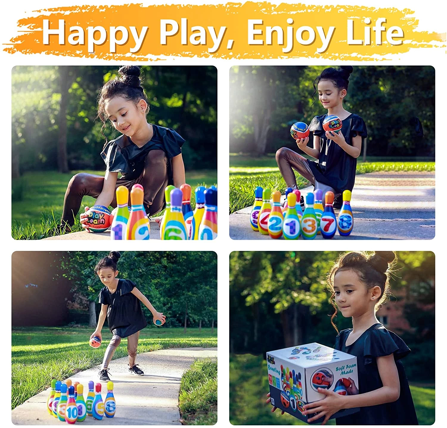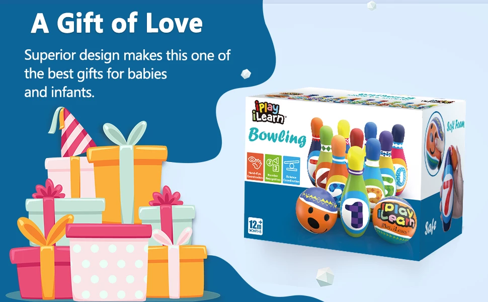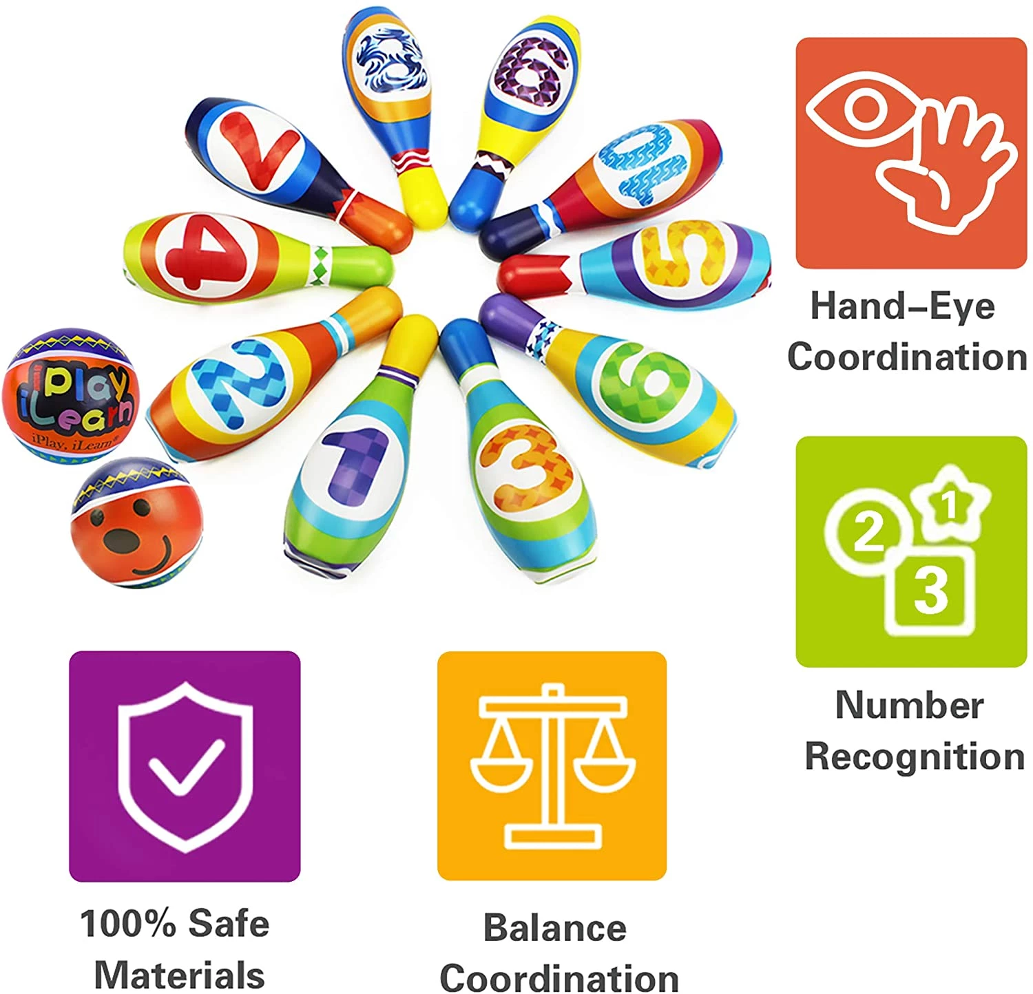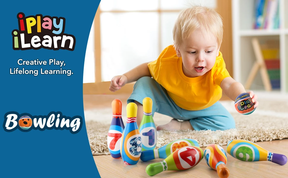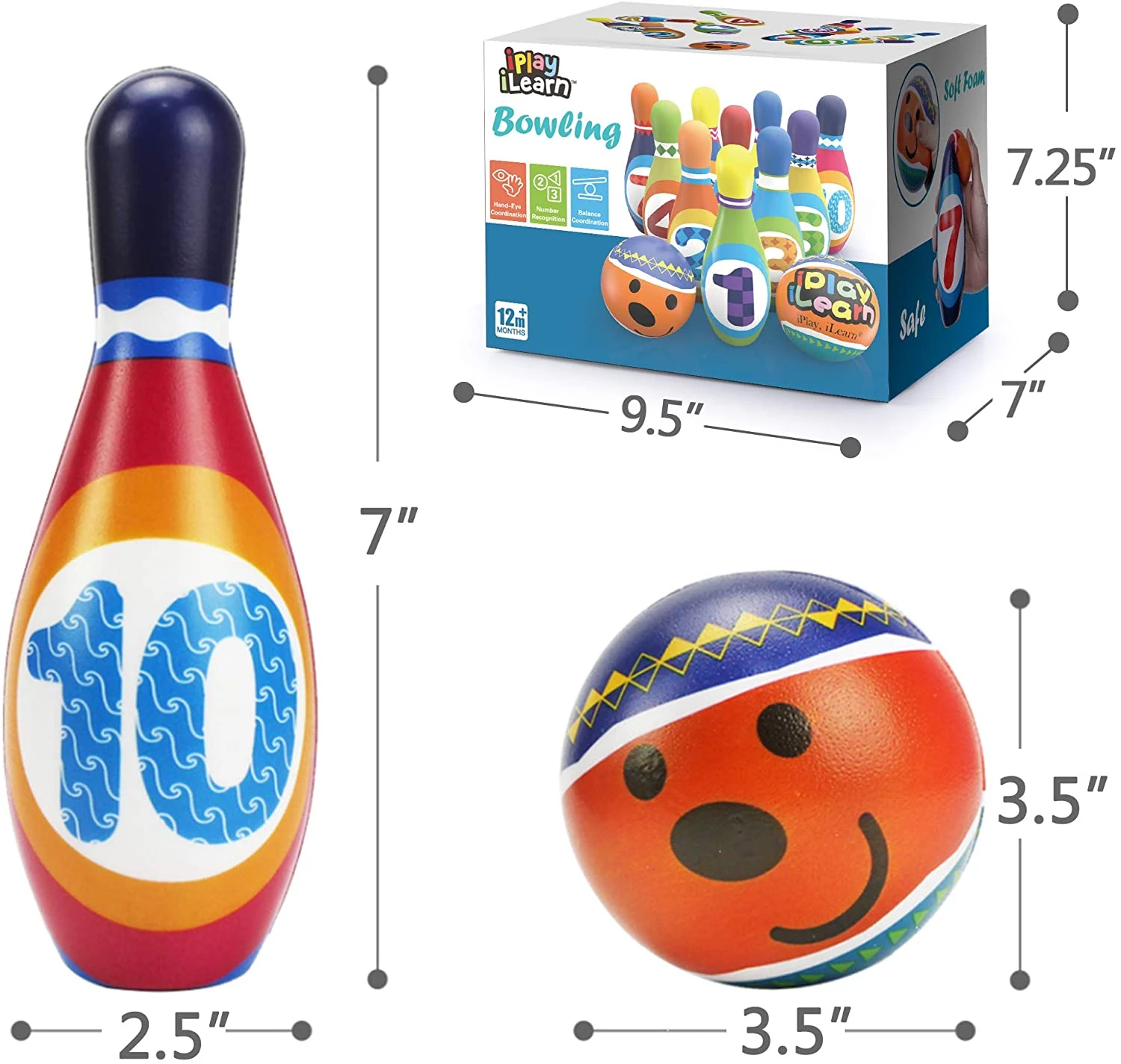 iPlay, iLearn Kids Bowling Toys Set, Toddler Indoor Outdoor Activity Play Game, Soft 10 Foam Pins & Two Balls Playset, Educational