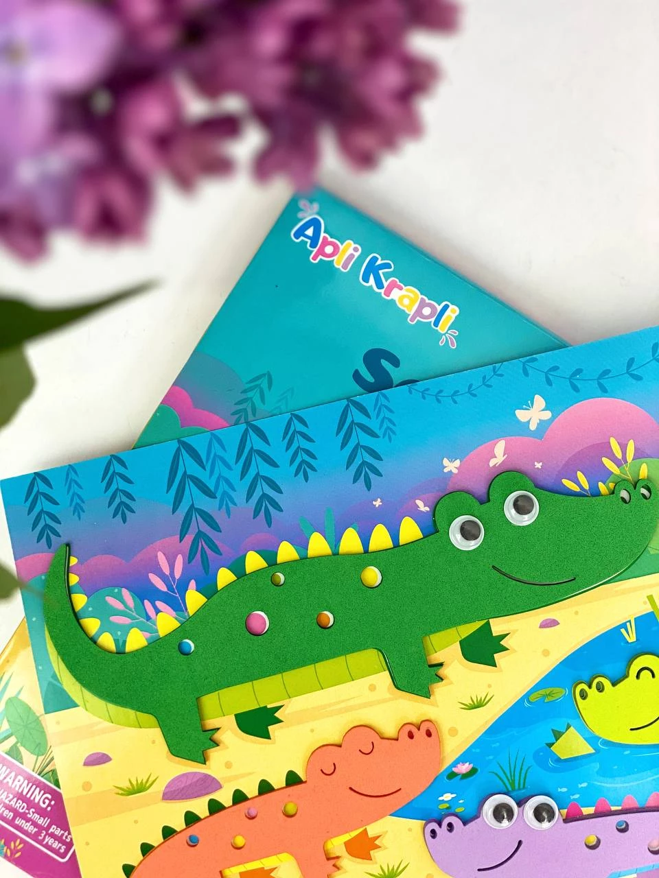 Набір для створення аплікації з фетру «Крокодили» буде гарним подарунком для маленьких фантазерів, які люблять створювати різноманітні поробки. Робота з м'яким, приємним на дотик фетром стимулює сенсорний розвиток, збагачує тактильний досвід дитини. Крім того, працюючи над створенням аплікації, дитина розвиватиме акуратність та концентрацію.