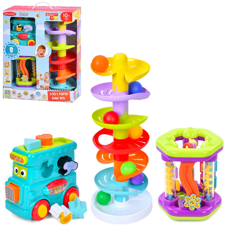 Даний набір 3 в 1 є багатофункціональним розвивальним центром, який поєднує три основних види активностей, спрямованих на розвиток дрібної моторики, логіки, а також сенсорного сприйняття маленьких дослідників.