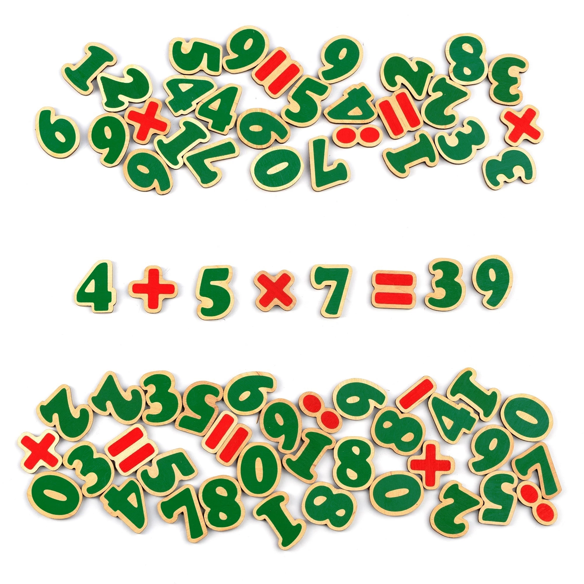 Набір з 72 магнітів познайомить дитину з цифрами та простими математичними прикладами, а також потренує дрібну моторику, координацію рухів та інші навички.