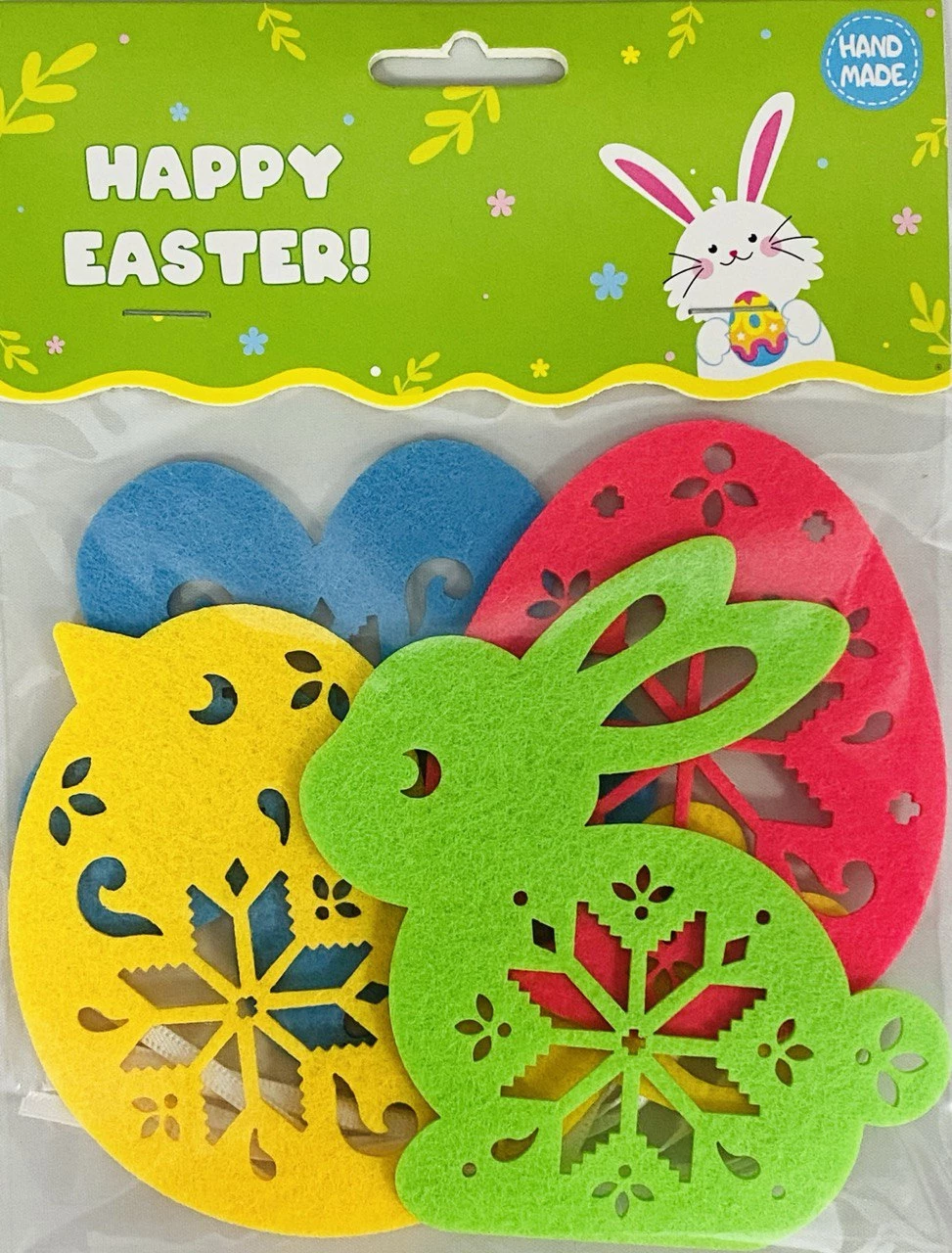 Цей святковий набір включає яскраві фігурки зі щільного фетру для декорування великодніх кошиків. У комплект входять відомі символи свята. Насичені кольори — жовтий, зелений, червоний та синій — створять по-справжньому весняний настрій. М'який та якісний матеріал робить прикраси довговічними та приємними на дотик. Такі елементи декору стануть чудовим доповненням до творчих виробів або сувенірів ручної роботи.