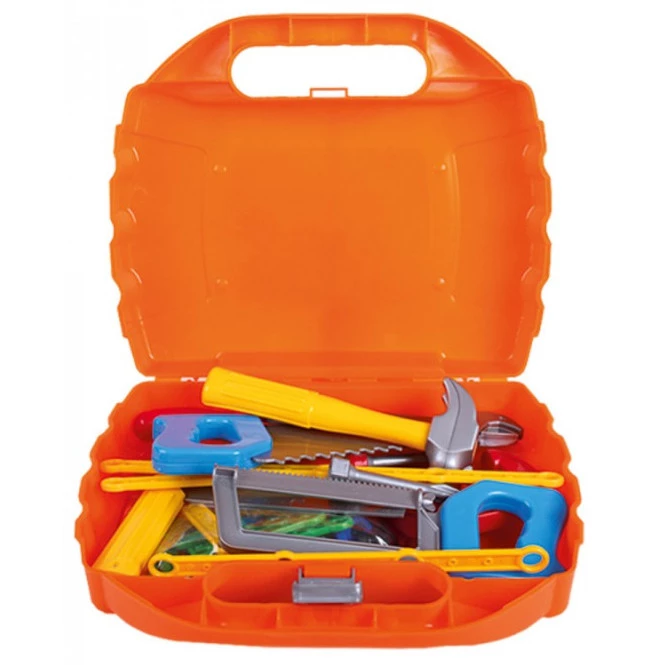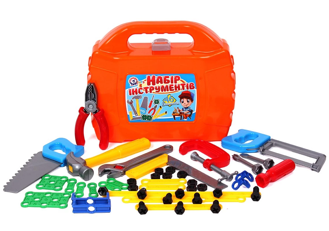 Цей реалістичний набір з інструментами – справжня знахідка для всіх маленьких майстрів! Упакований у зручний пластиковий кейс набір, окрім «класичних» елементів, таких, як молоток, викрутки, пилки та плоскогубці, містить пластмасові кутники, пластини, гайки та болти. Це хороша можливість для дитини познайомитися з принципами роботи різьбових з'єднань, що, безумовно, стане в нагоді у дорослому житті.
