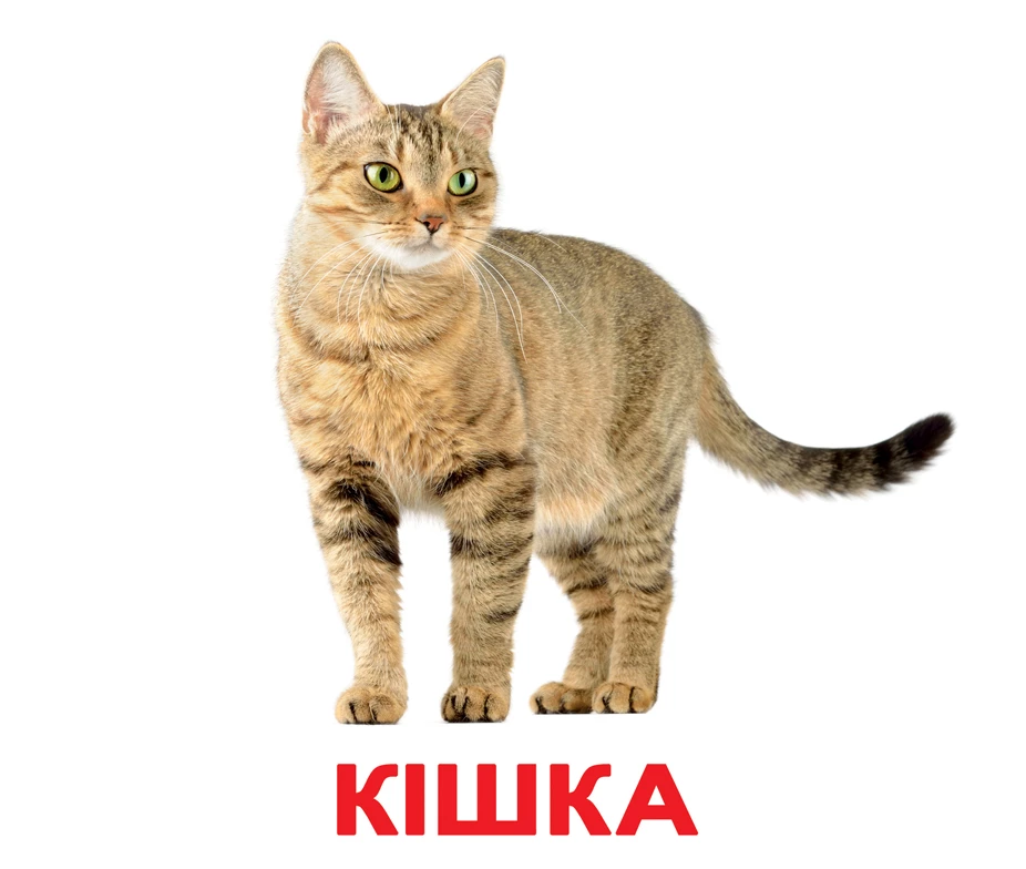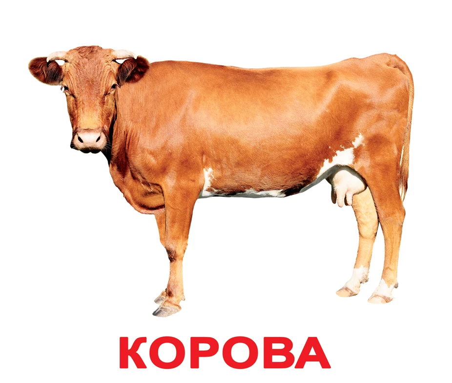 У комплекті є зображення кота, собаки, а також господарських тварин, таких як кінь, корова, коза, свиня та багато інших.