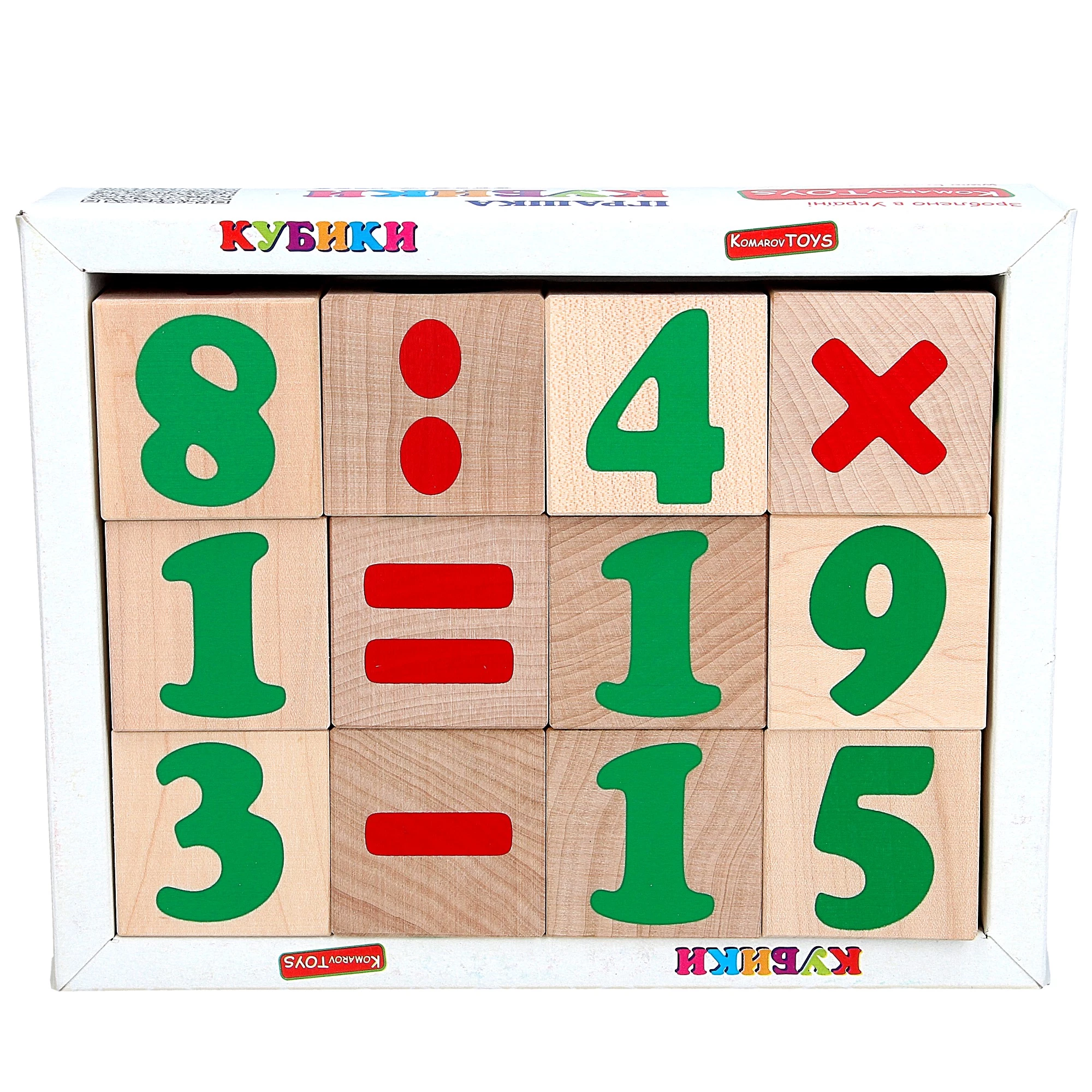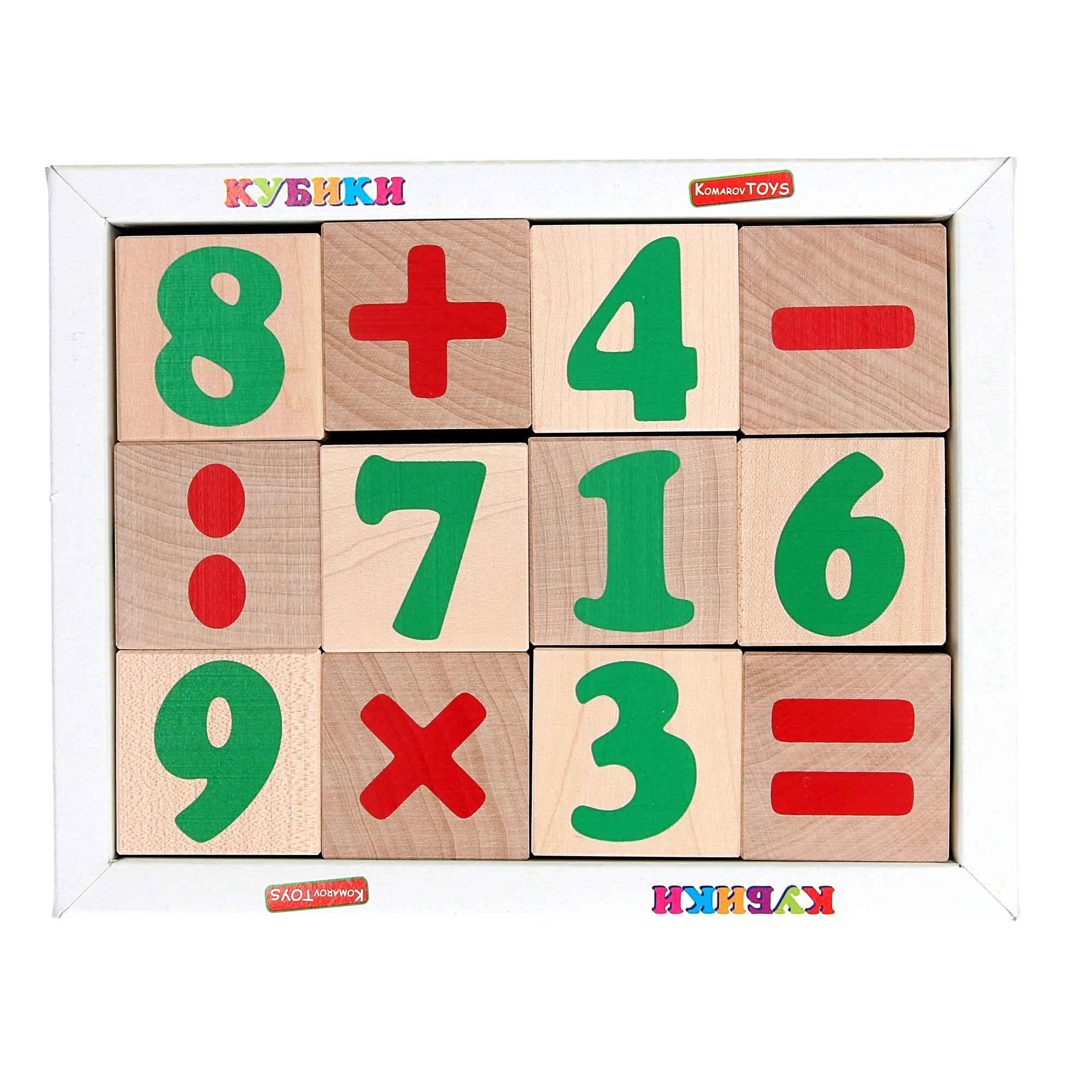 Цей набір з дванадцяти дерев'яних кубиків – чудовий подарунок для допитливих дівчаток та хлопчиків. Тільки уявіть собі, з яким інтересом ваша дитина гратиме з цими кубиками, вивчаючи цифри та математичні знаки. Створюючи різноманітні комбінації, малюки розвиватимуть дрібну моторику, а також навчаться вирішувати нескладні арифметичні приклади. Даний набір поєднує гру та освітній процес.