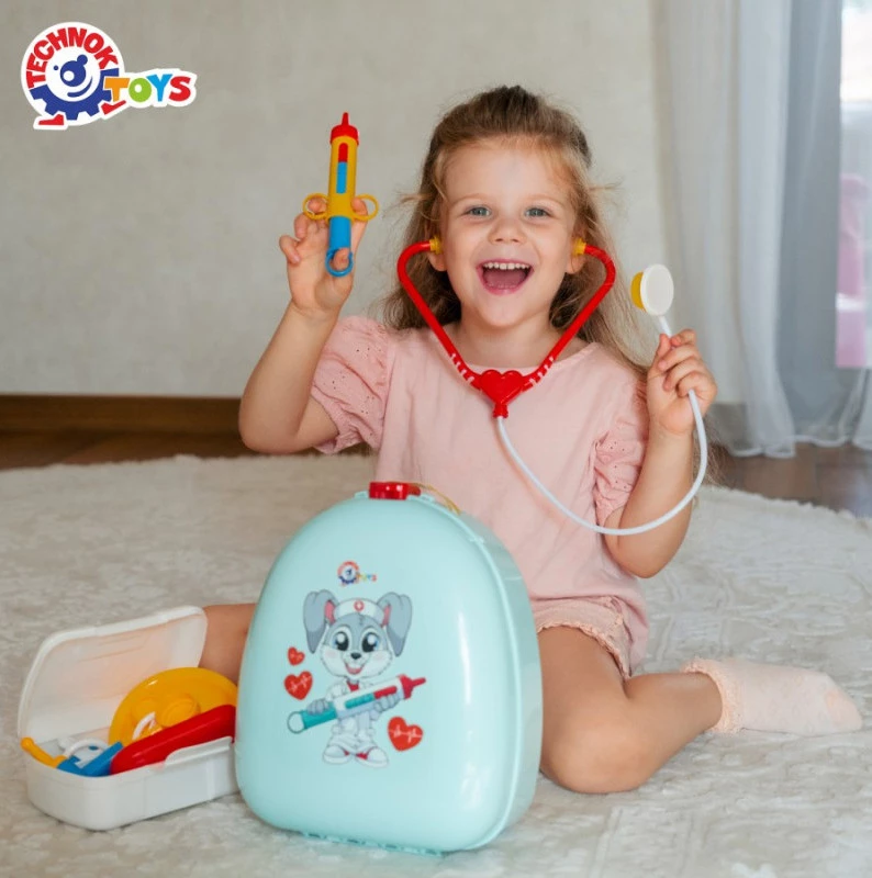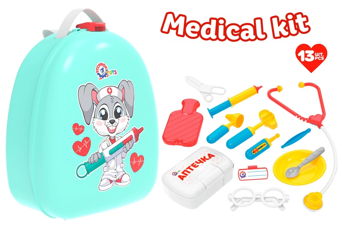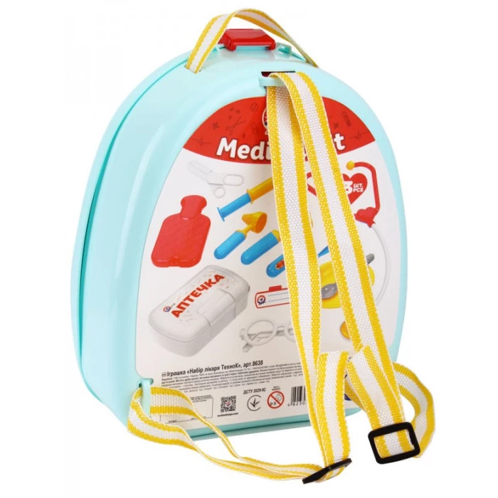 За допомогою даного набору лікаря, маленькі фантазери весело проведуть час і лікуватимуть своїх улюблених плюшевих ведмедиків або ляльок. Іграшкові медичні інструменти упаковані в гарний та зручний рюкзачок. А ще в наборі є велика справжня аптечка, яку можна брати з собою на прогулянки чи у подорожі. В аптечку можна класти вітамінки, пластир, антисептик та гігієнічні серветки.