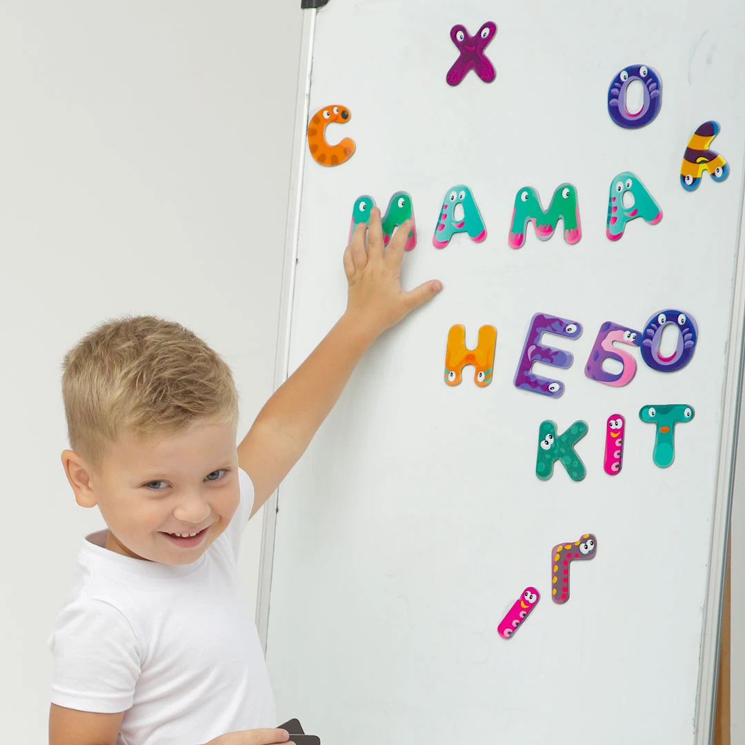 З магнітними літерами можна грати на будь-якій металевій поверхні, чи то дошка чи холодильник.