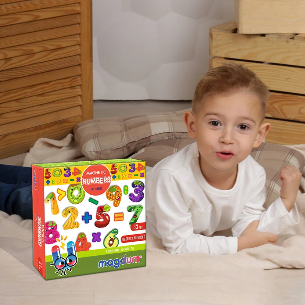 Нехай перше знайомство вашої дитини з цифрами буде цікавим та веселим. Набір магнітних цифр – чудовий подарунок для майбутніх першокласників та першокласниць! Комплект включає 33 великих і міцних магніти без гострих кутів. Завдяки спеціальному захисному шару гарантується довговічність та практичність даних магнітів, а закруглені кути – це цілком безпечна гра. Грати з такими магнітами можна, використовуючи спеціальну дошку або просто холодильники, або інші металеві поверхні, що підходять для ігор. Набір можна брати з собою на прогулянки, у гості, у поїздки.