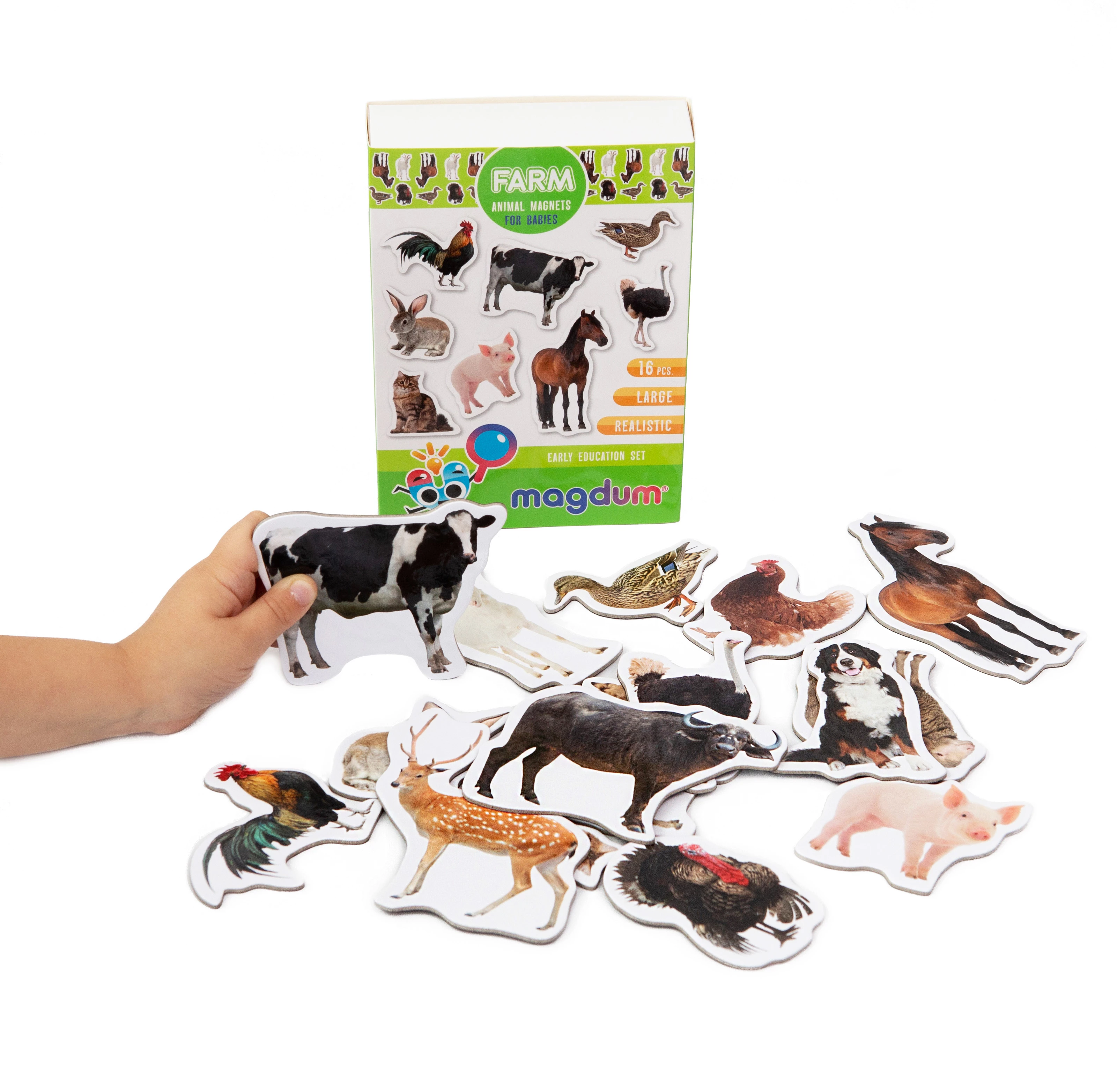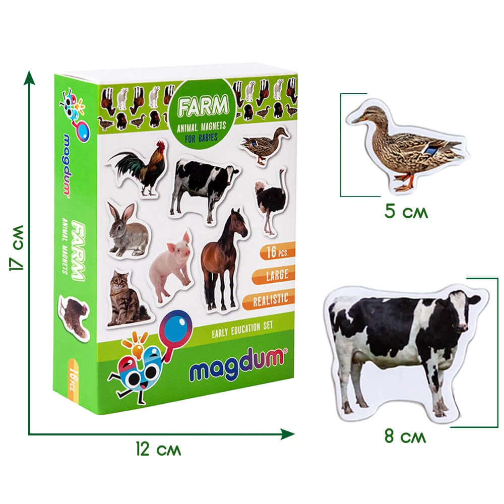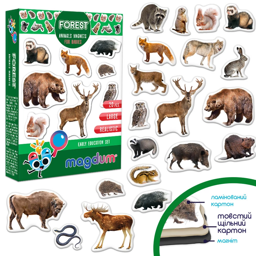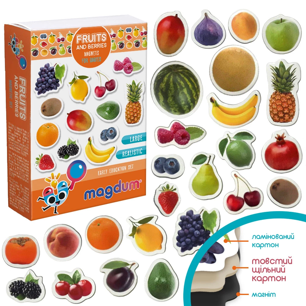 Магнітні фігурки допоможуть допитливим діткам познайомитися з навколишнім світом. Тематика пропонованих фігурок найрізноманітніша - від овочів та фруктів до різних видів тварин. Магніти зручні для дитячих ручок, мають великі розміри. Магніти ламіновані з безпечно закругленими краями. Їх легко кріпити та знімати з металевих поверхонь. Набір можна використовувати у дитячому садку, у гостях, у дорозі.