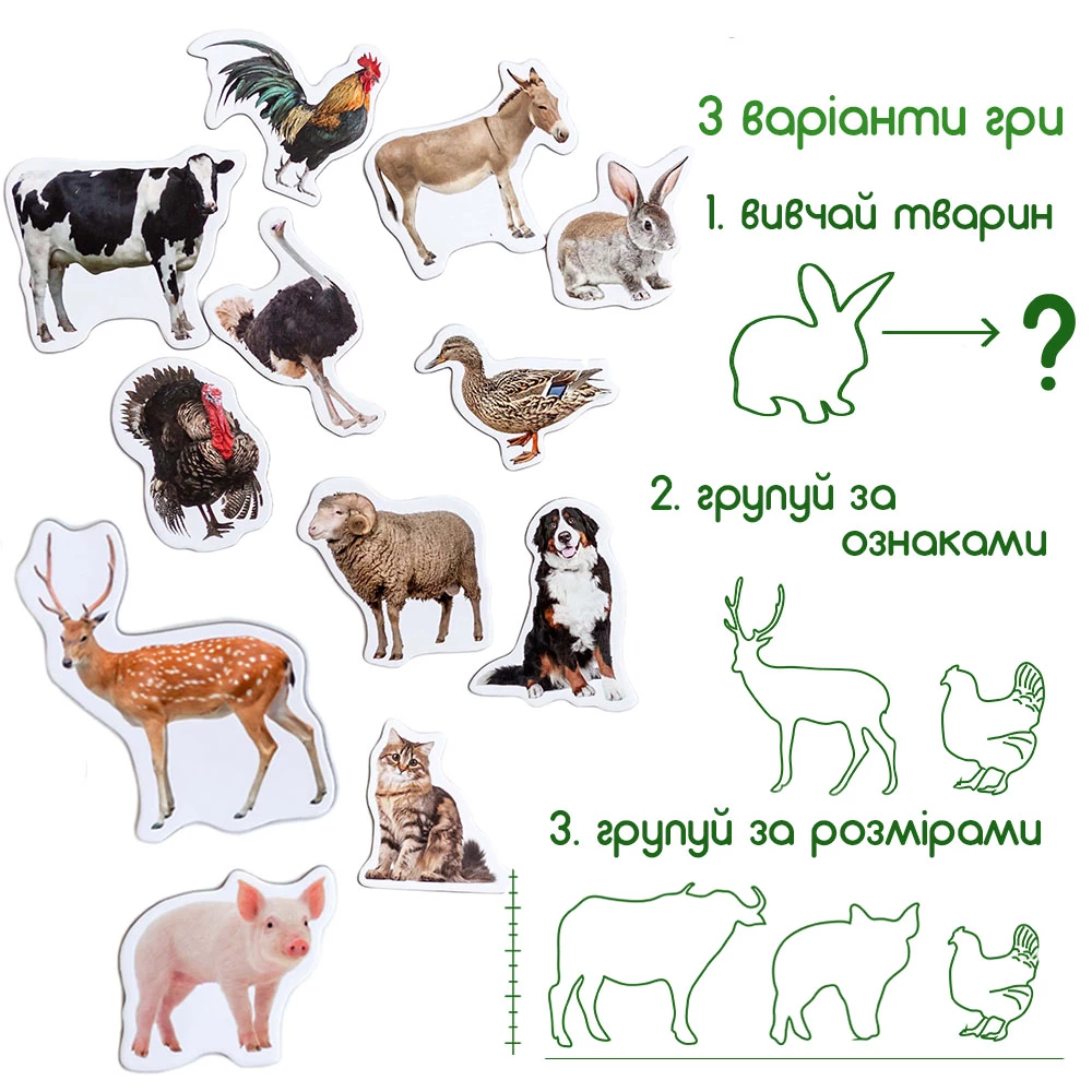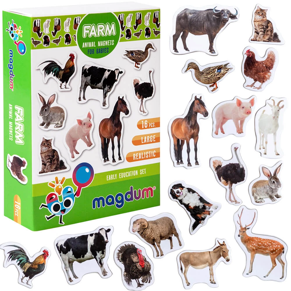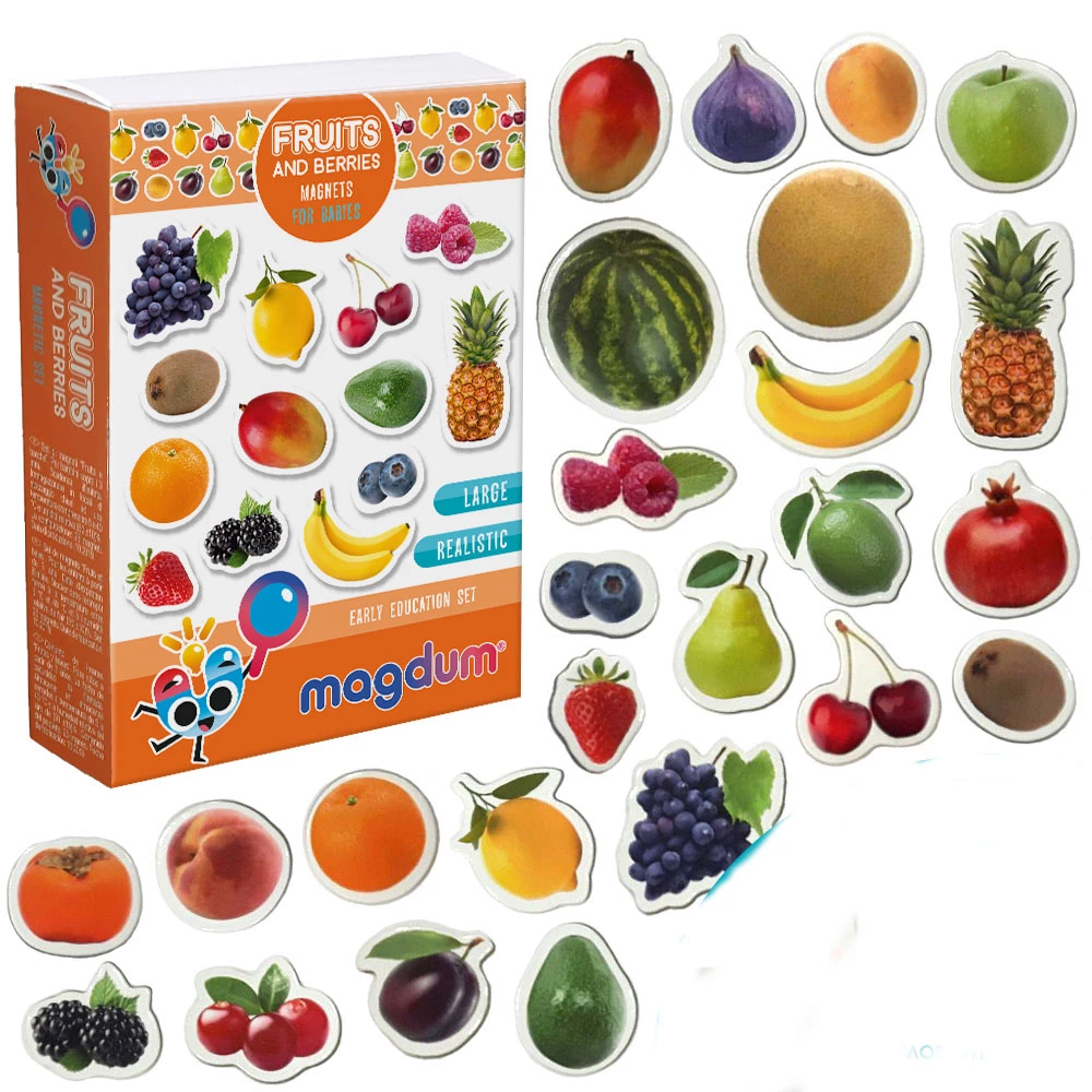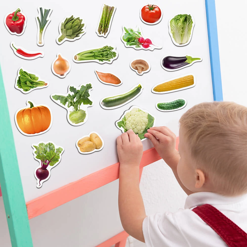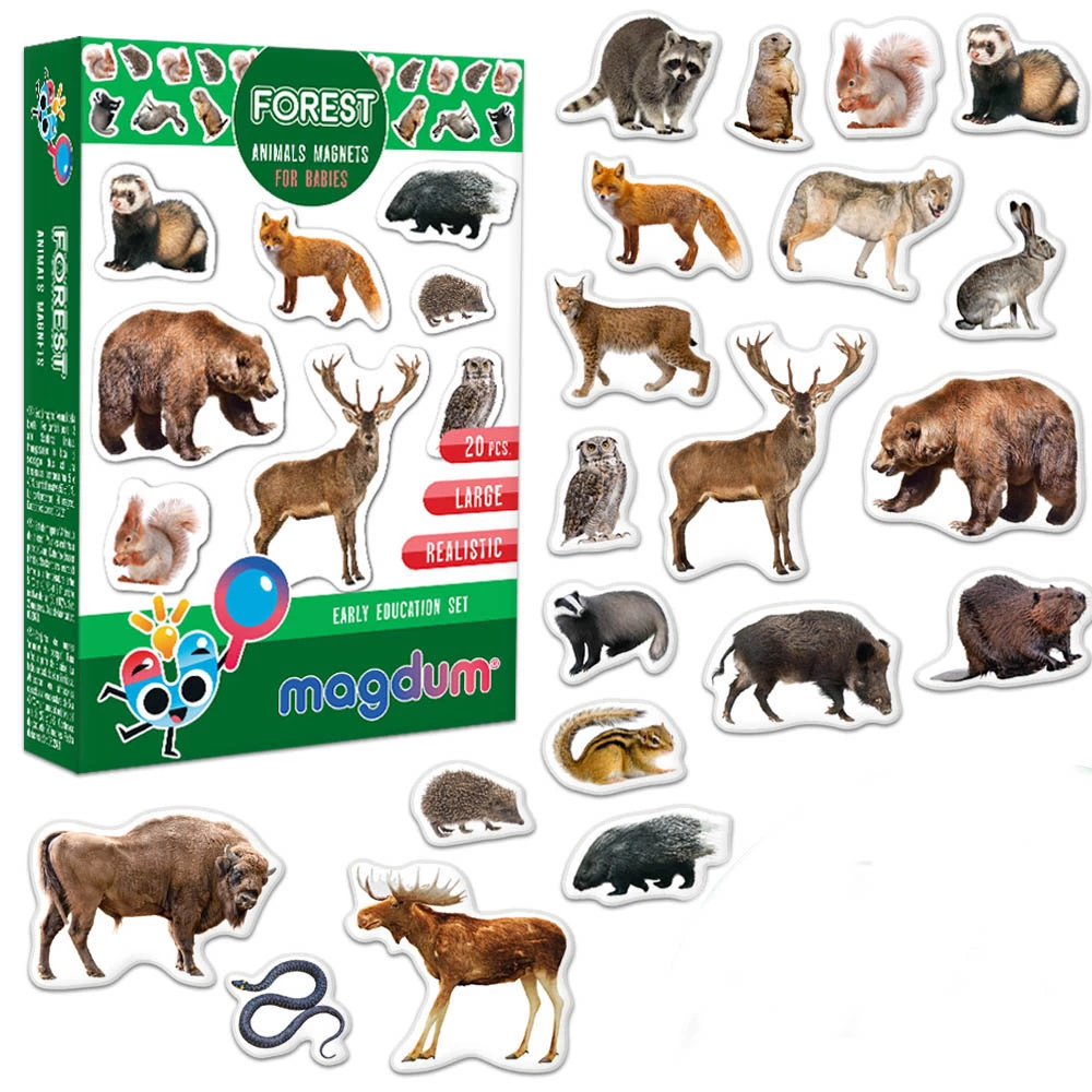 Магнітні фігурки допоможуть допитливим діткам познайомитися з навколишнім світом. Тематика пропонованих фігурок найрізноманітніша - від овочів та фруктів до різних видів тварин. Магніти зручні для дитячих ручок, мають великі розміри. Магніти ламіновані з безпечно закругленими краями. Їх легко кріпити та знімати з металевих поверхонь. Набір можна використовувати у дитячому садку, у гостях, у дорозі.