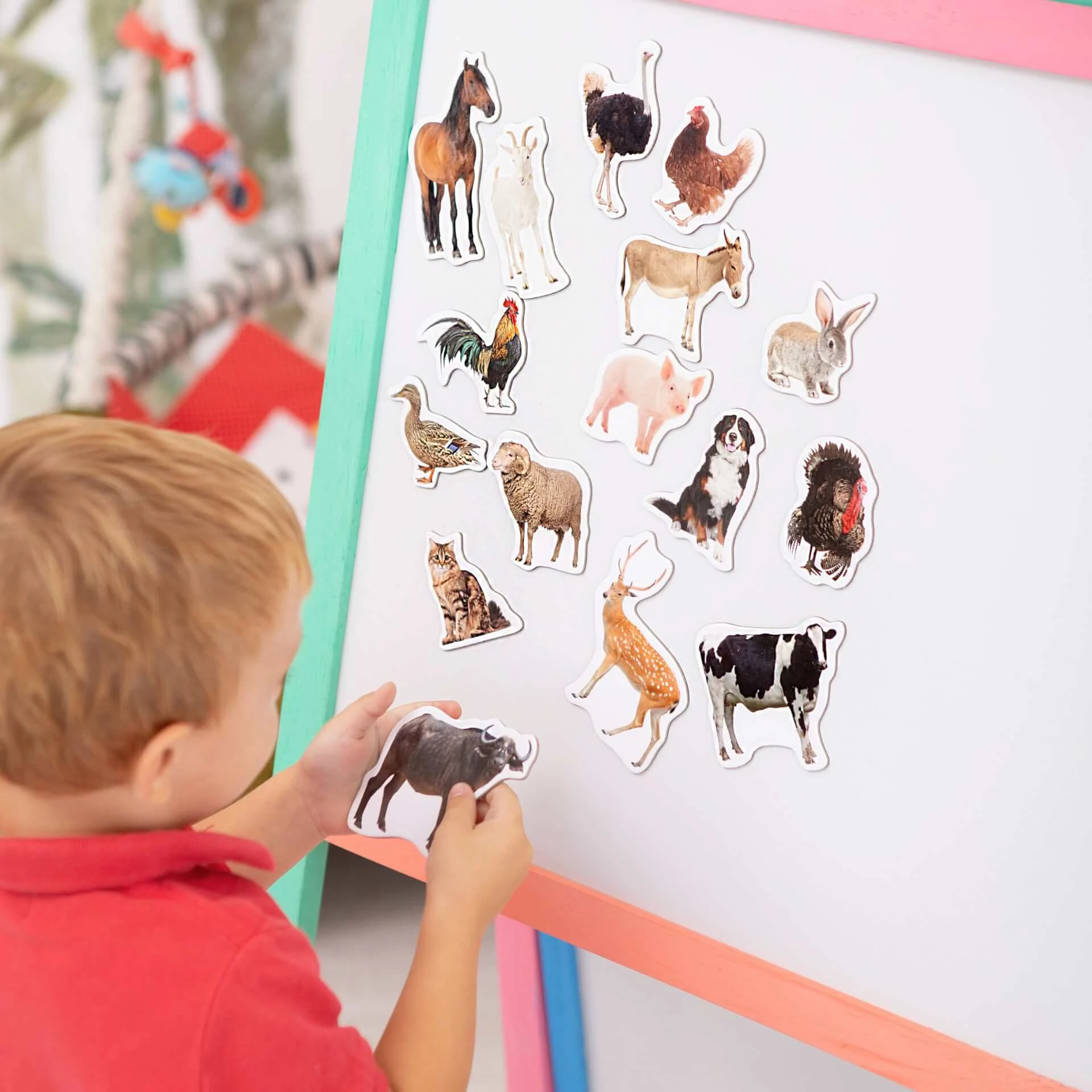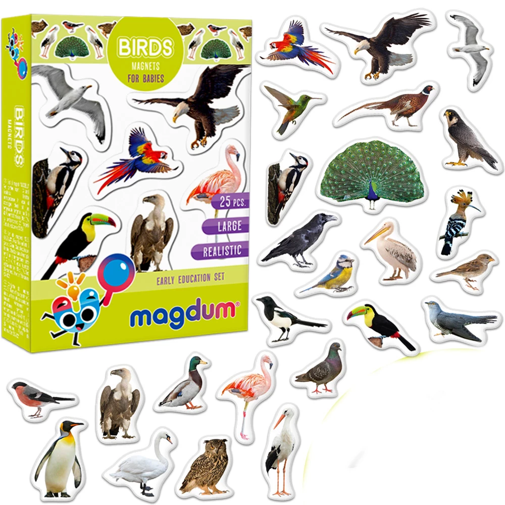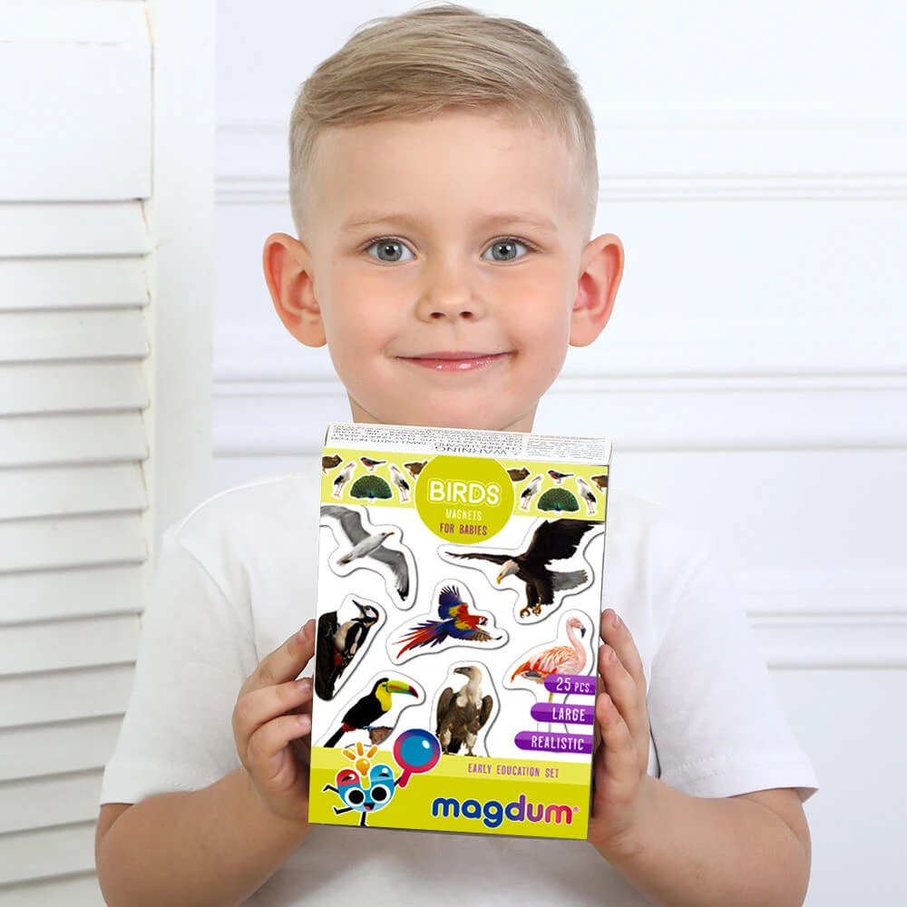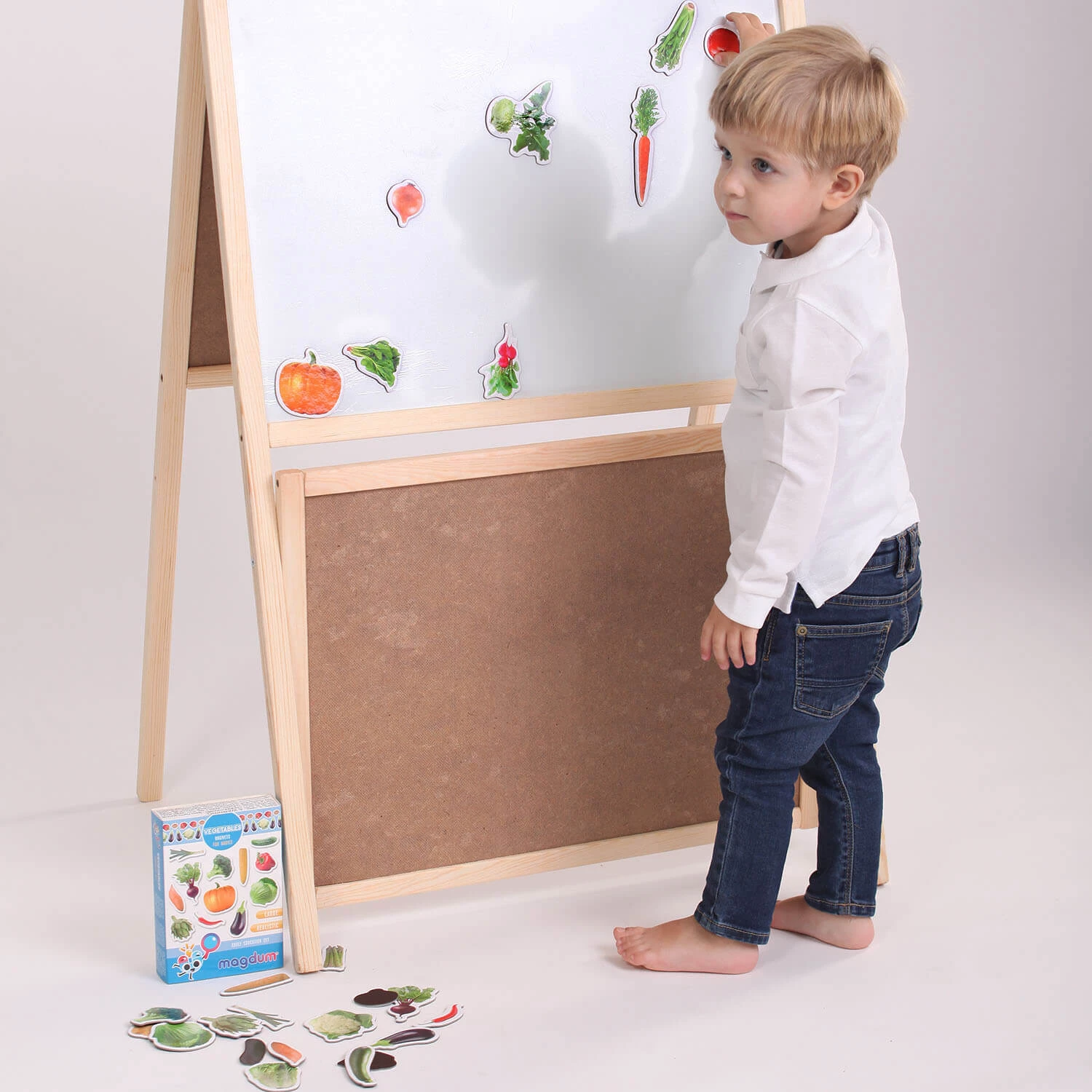 Магнітні фігурки допоможуть допитливим діткам познайомитися з навколишнім світом. Тематика пропонованих фігурок найрізноманітніша - від овочів та фруктів до різних видів тварин. Магніти зручні для дитячих ручок, мають великі розміри. Магніти ламіновані з безпечно закругленими краями. Їх легко кріпити та знімати з металевих поверхонь. Набір можна використовувати у дитячому садку, у гостях, у дорозі.