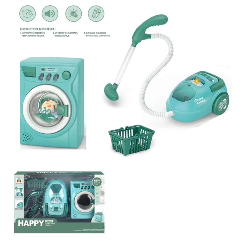 - Пральна машинка, що входить в набір, характеризується реалістичним дизайном. Звукові та світлові ефекти справлять враження на вашу дитину і зроблять гру ще більш правдоподібною. Пральна машина працює від батарейок.