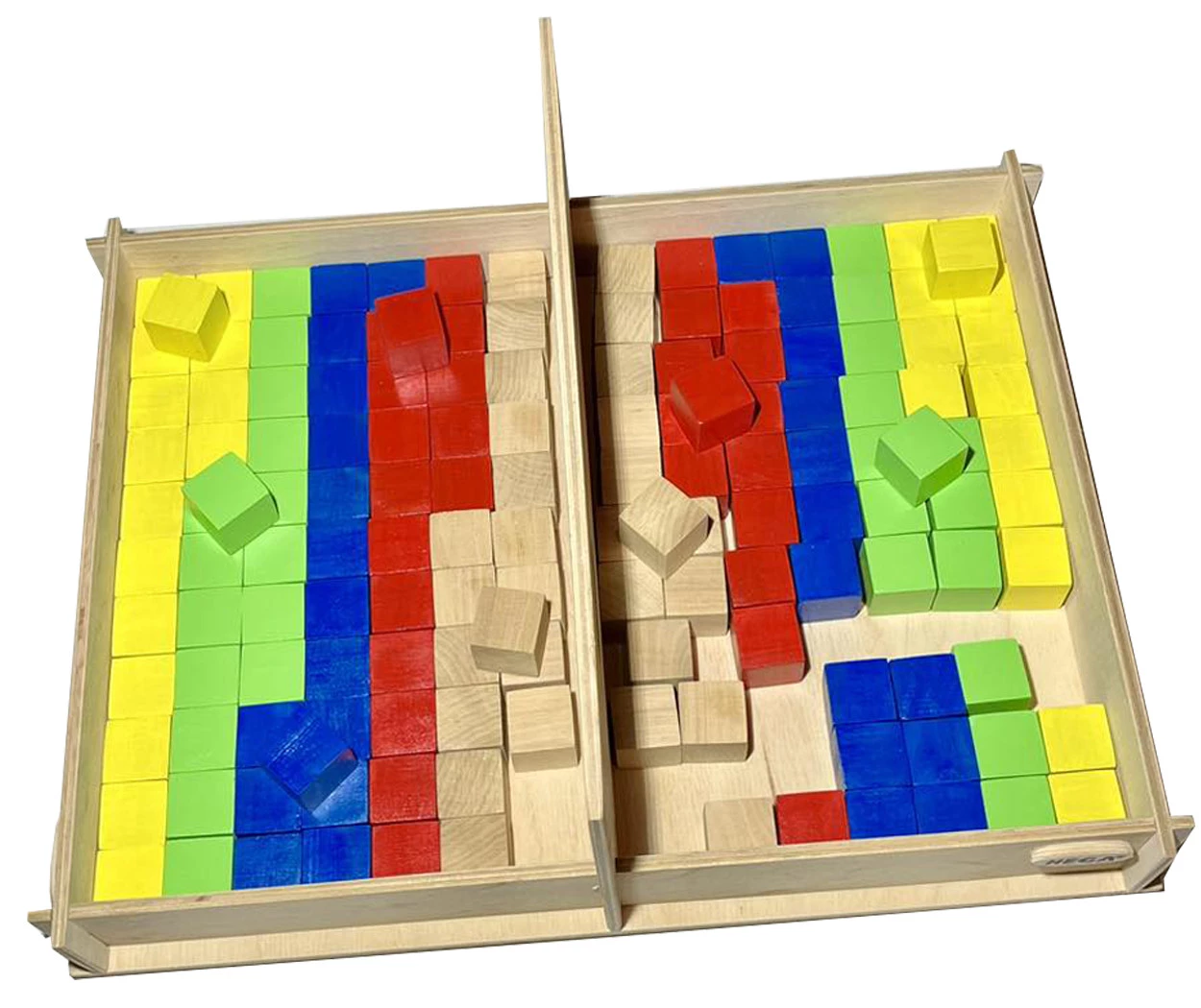 - Набір зі 150+ яскравих кубиків стандартного розміру (2,5 см), зручні для захоплення рукою.