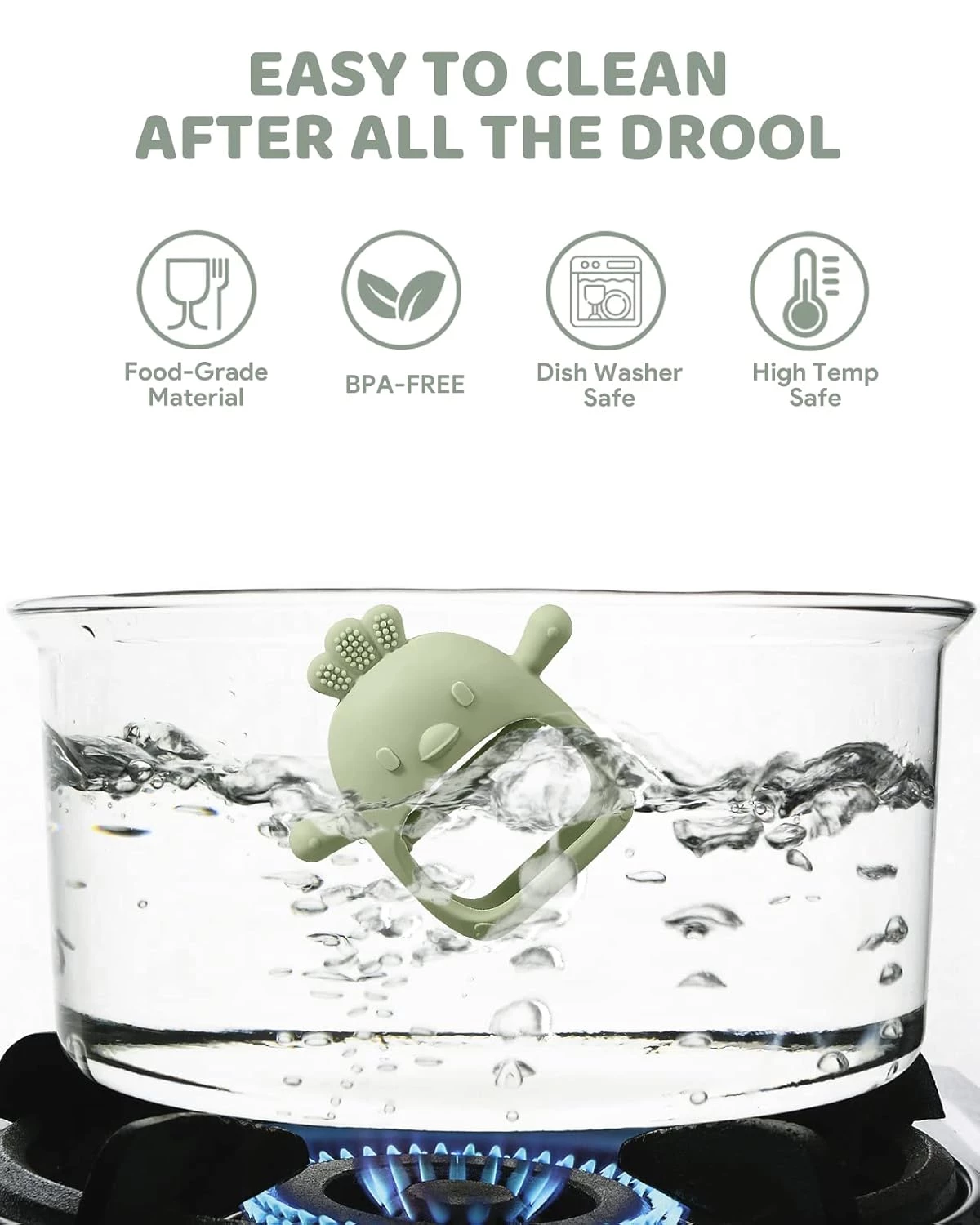 Унікальна форма з «вушками», що нагадують соску, додатково заспокоює дитину та імітує звичний процес ссання. Прорізувач виконаний з безпечного харчового силікону без вмісту бісфенолу-A (BPA), що гарантує повну безпеку при жуванні. Виріб захищає ніжну шкіру рук дитини від подразнень слиною та випадкових самоушкоджень під час активного прорізування зубів.