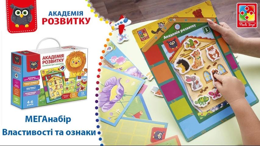 Набір в ігровій формі допомагає вивчати величини, ознаки та властивості об’єктів, а також засвоювати орієнтування у просторі. Все, що потрібне для розвитку майбутнього першокласника в одному комплекті!