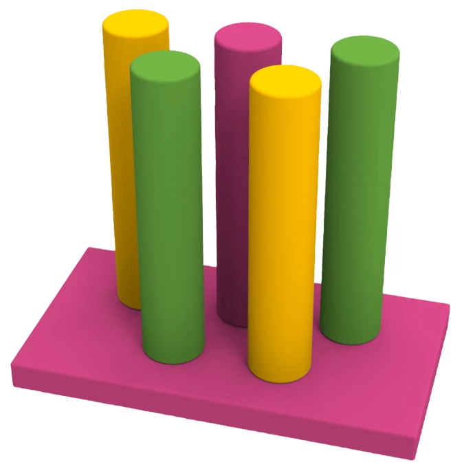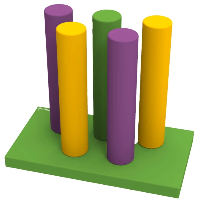 М'який модульний набір прекрасно підходить для використання в дитячих закладах і вдома. Мат і циліндри легко збираються в одне ціле і можуть застосовуватися як Смуга перешкод, для естафет і різноманітних активних ігор. Комплект виготовлений з еластичного поролону і міцної ПВХ-тканини. Для довговічного застосування рекомендується розміщувати його тільки в сухих приміщеннях. Яскравий дизайн і відсутність твердих елементів роблять набір абсолютно безпечним для дітей.