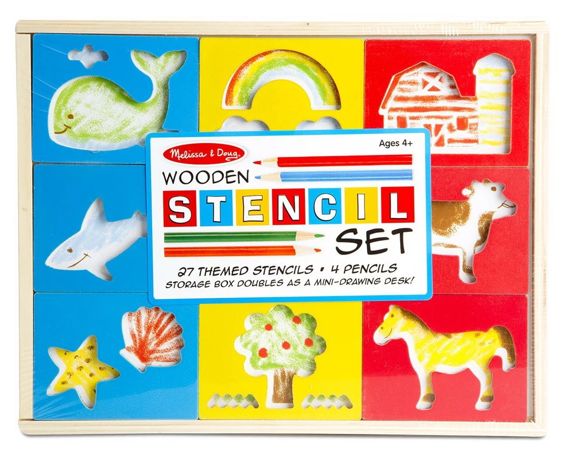 Melissa & Doug Wooden Stencil Set With 27 Themed Stencils and 4 Pencils