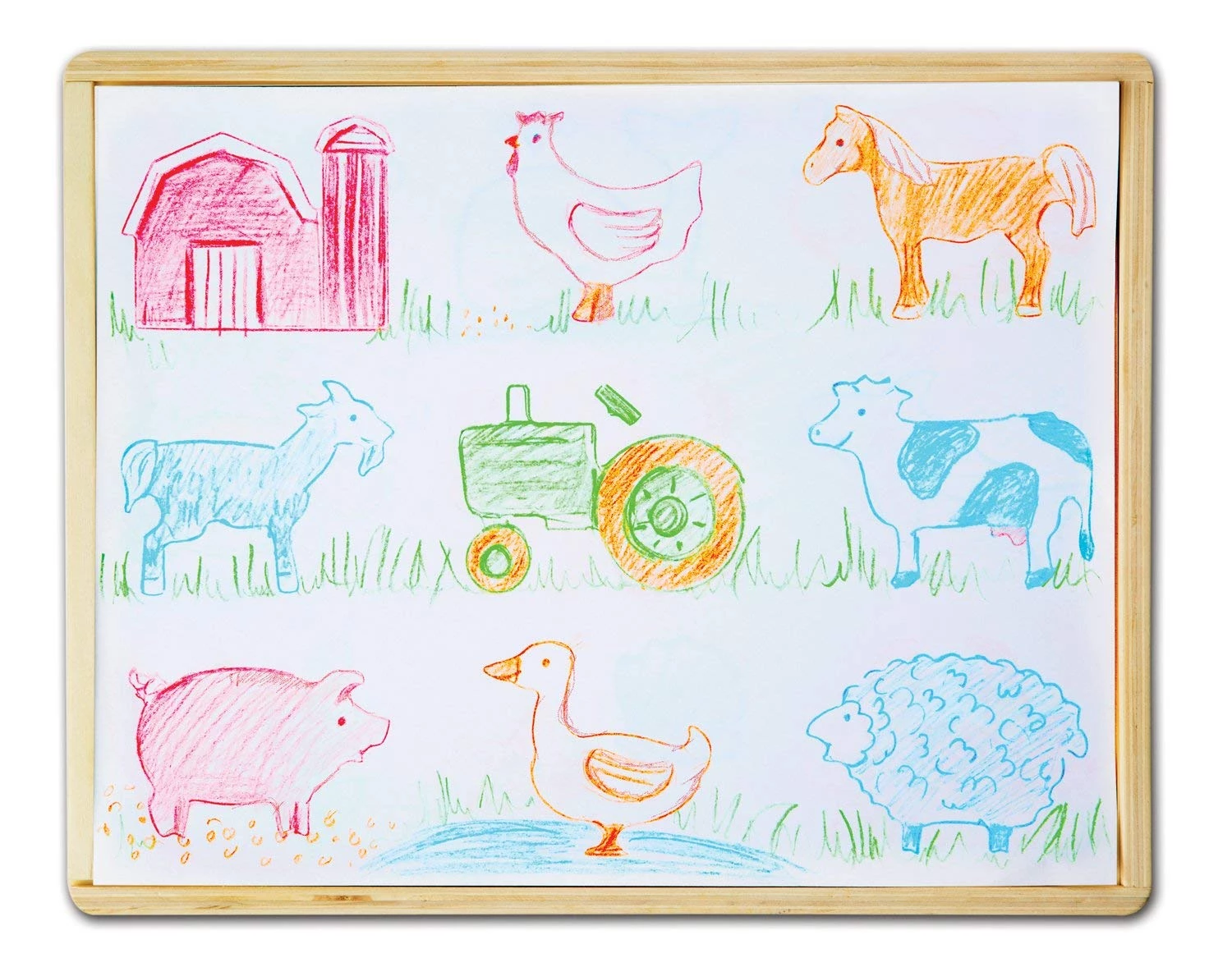 У наборі 27 тематичних трафаретів (корова, трактор, машина, собака, акула і восьминіг) і 4 кольорових олівця.
