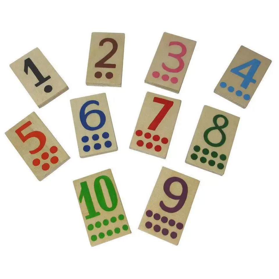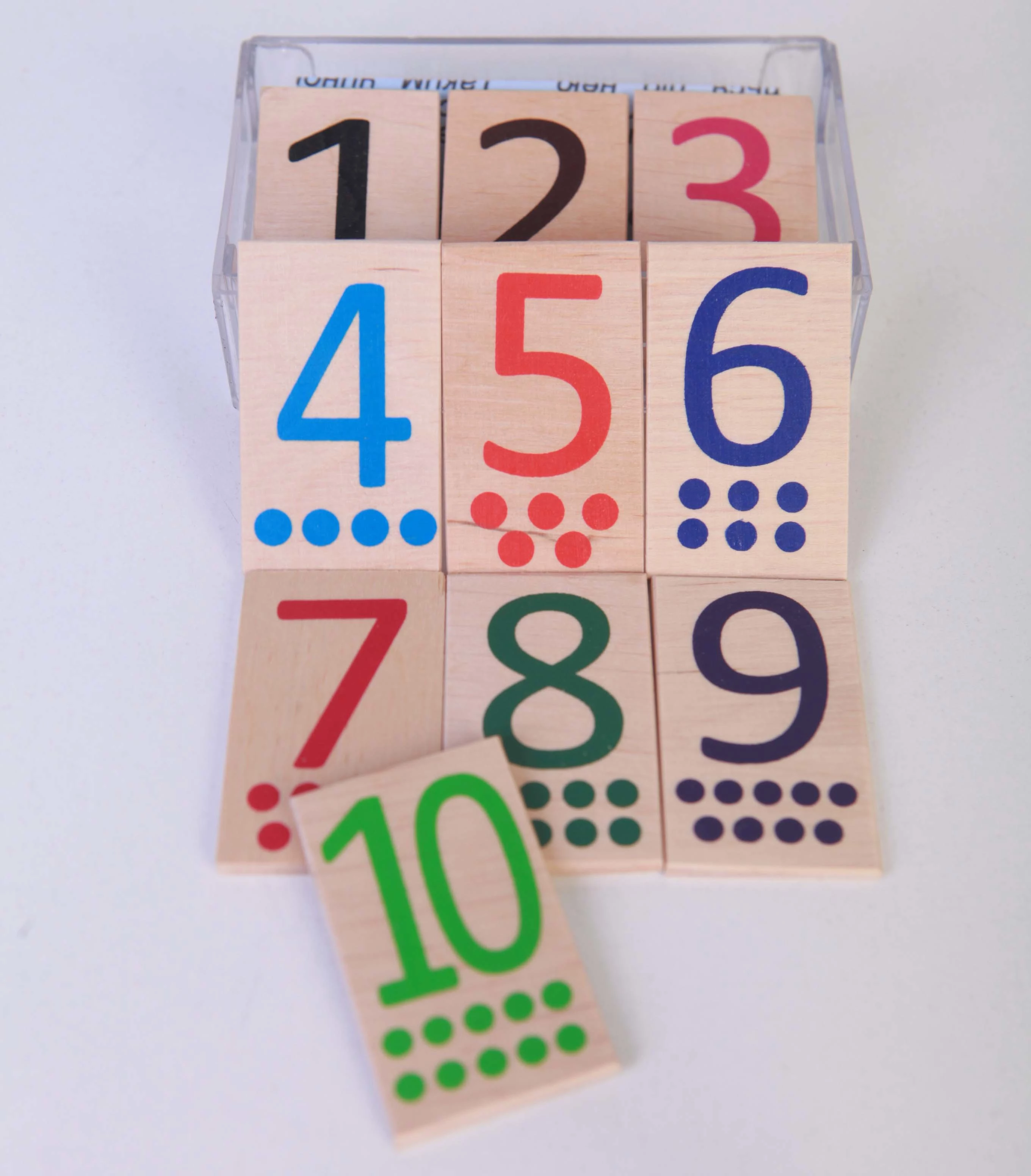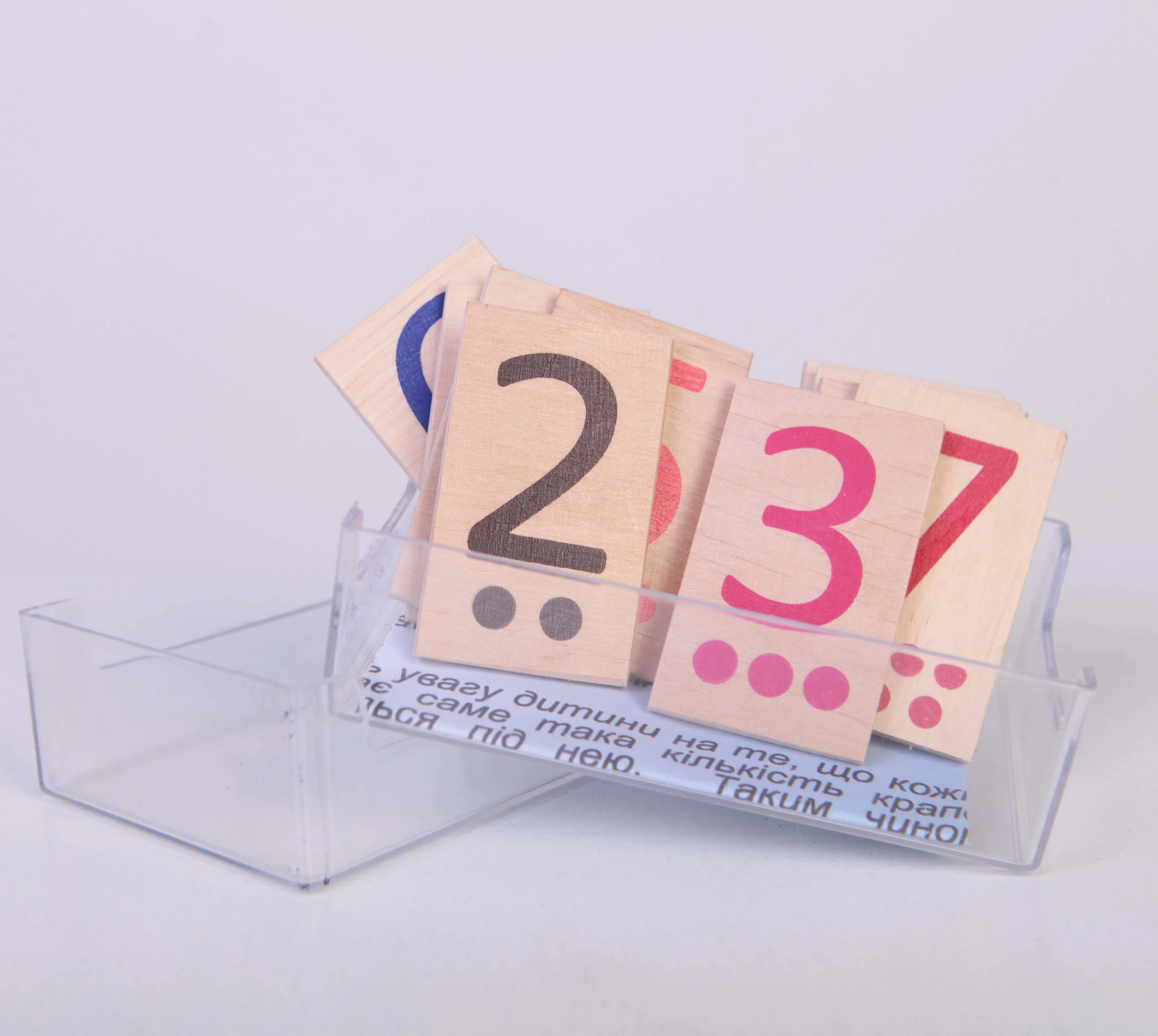 Всі цифри забарвлені в різні кольори, кількість кружечків на дошці відповідає порядковому номеру цифри. Таким чином, ваша дитина зможе сама вибрати, як їй зручніше запам'ятати ту чи іншу цифру (за кількістю крапок, за кольором або просто саму цифру).