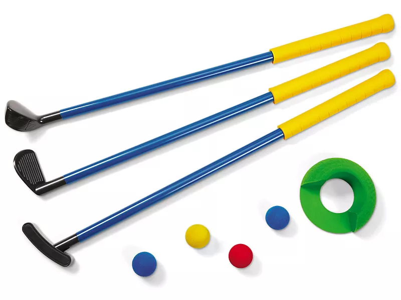 Цей набір дозволяє грати у гольф навіть дітям! Він чудово підходить для початківців. У ньому є все, що потрібно дитині, щоб весело провести час, удосконалюючи важливі вміння та навички. 3 міцні пластикові ключки оснащені суперм'якими ручками, за які дітям легко братися. Крім того, в набір входять 4 щільні пінопластові м'ячі, пінопластова тренувальна лунка і навіть зручна сумка для гольфу.