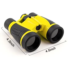 Бінокль має 4-кратне збільшення, діаметр об'єктива становить 30 мм. Пристрій оснащений м'якими гумовими окулярами та має ергономічні для дитячих ручок розміри. Регульована ширина забезпечує зручне фокусування.