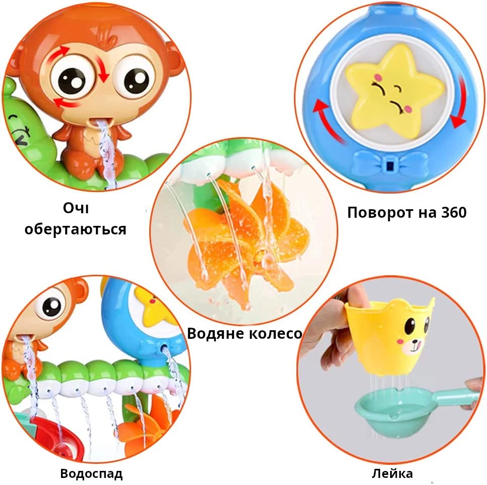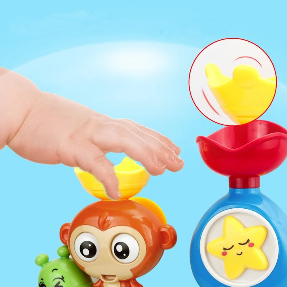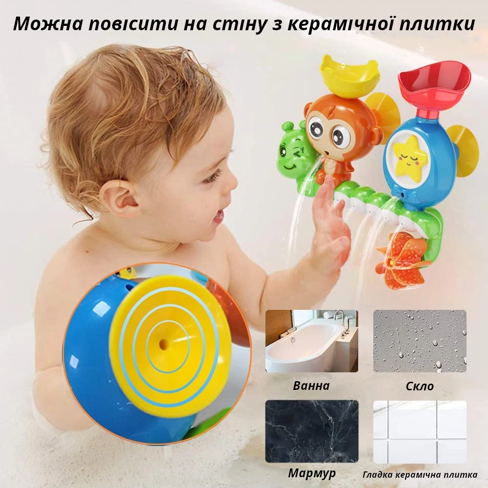 Налийте в іграшку для купання воду, очі мавпочки, а також усміхнена морська зірка почнуть обертатися.