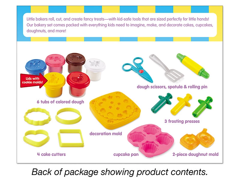 За допомогою даного набору можна створювати справжні шедеври кулінарного мистецтва. Безпечні дитячі прилади для створення ласощів допомагають розгортати іграшкове тісто і надавати йому потрібну форму. Шпателі, качалки, формочки для випічки, кондитерські шприци та багато іншого стане в нагоді для приготування виробів. Можна слідувати спеціальній інструкції, щоб страви виходили красивими і акуратними.